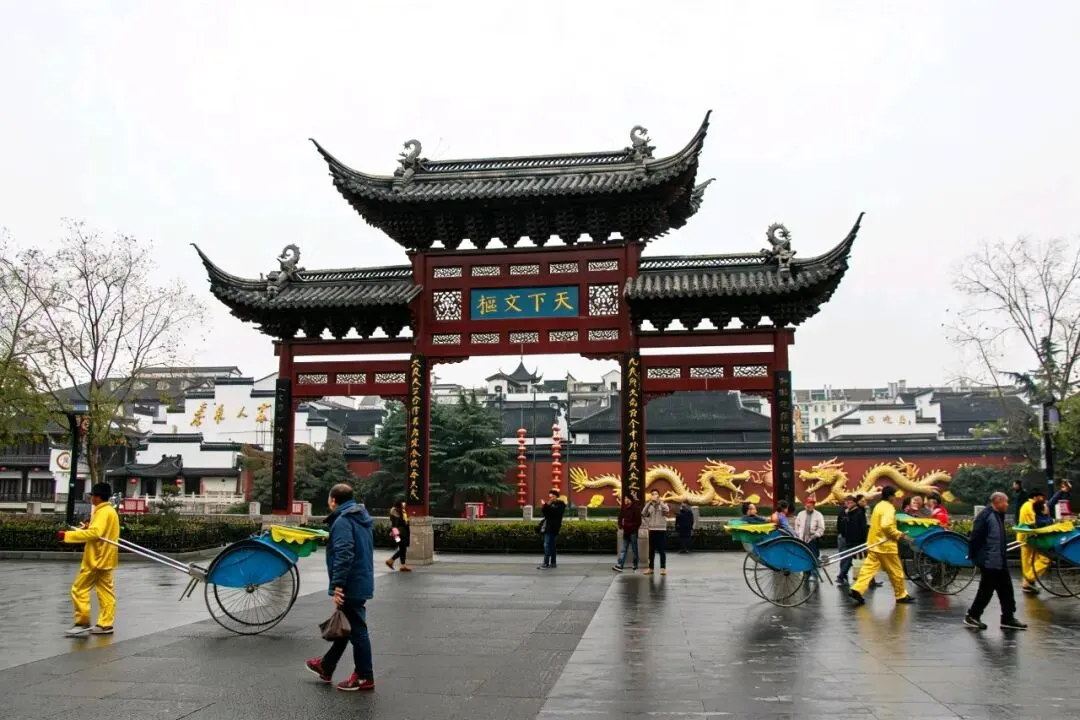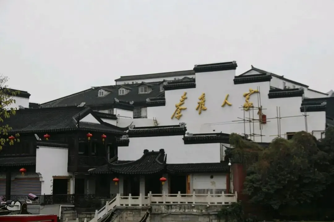 虽然是12月份,隆冬的萧瑟依然掩盖不了江南的婉约。乌云蔽日,银色的天空下,这一幅水墨画更显悠远。鎏金的屋檐、金黄的银杏叶、雕梁画栋的游舫、翠绿欲滴的碧波,为这幅画增添了些许灵动与欢快。烟笼寒水月笼沙,夜泊秦淮近酒家。小桥流水,玉榭楼台,茶楼酒肆,处处彰显着热闹与繁华。金陵一梦,是十二钗琴弦凑出的绝唱,是文人墨客落笔而成的文章。十里秦淮,一步一景,一景一诗,字字句句尽是风雅。