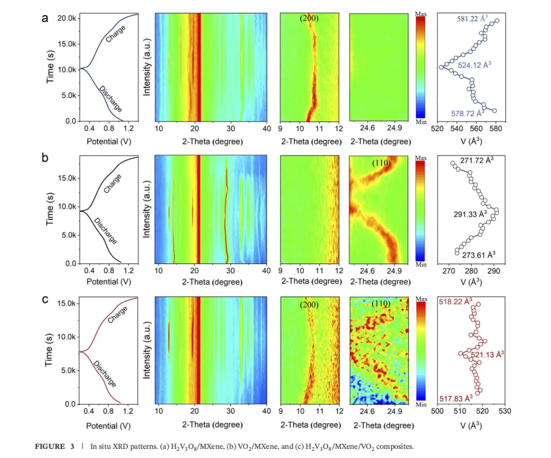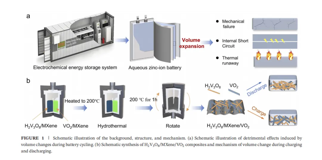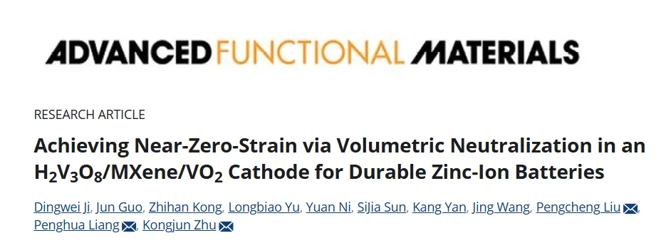 【水系锌电】 南京航空航天大学AFM:通过H₂V₃O₈/MXene/VO₂正极的体积中和实现近零应变以获得长寿命锌离子电池