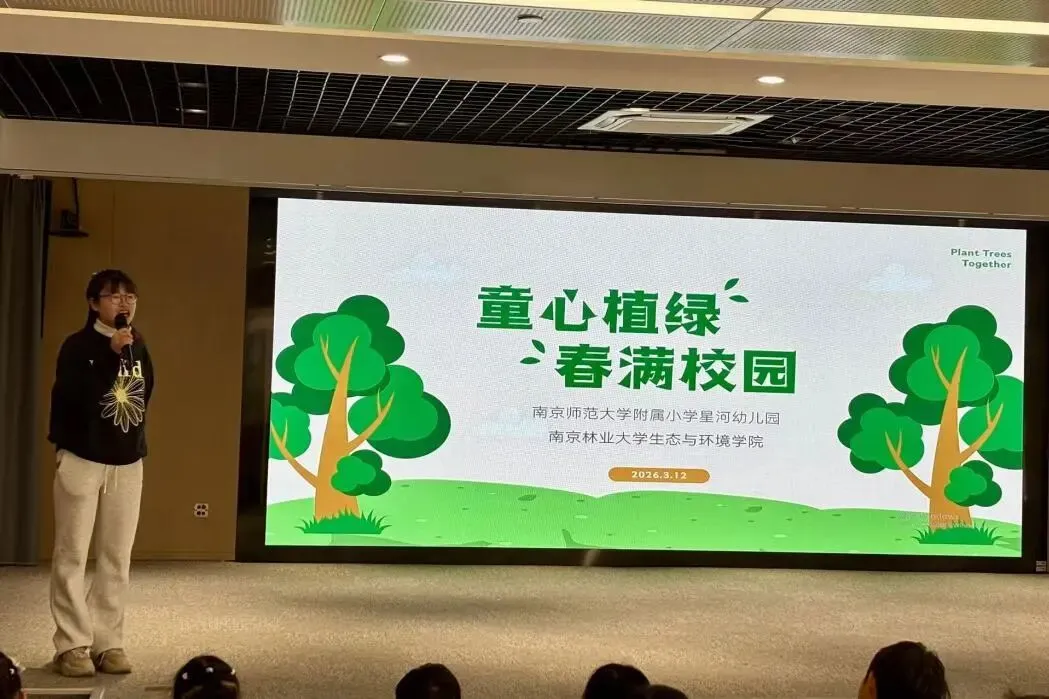 3月12日上午,南京师范大学附属小学星河幼儿园中班组携手红山街道、南林大生态与环境学院,共同举办植树节主题活动。林大志愿者们为小朋友讲解种植方法,科普生态保护知识,孩子们扶苗培土,家长们帮忙挖坑浇水,现场暖意融融,园家社协同播撒下生态文明的种子,让绿色理念在实践中扎根成长。