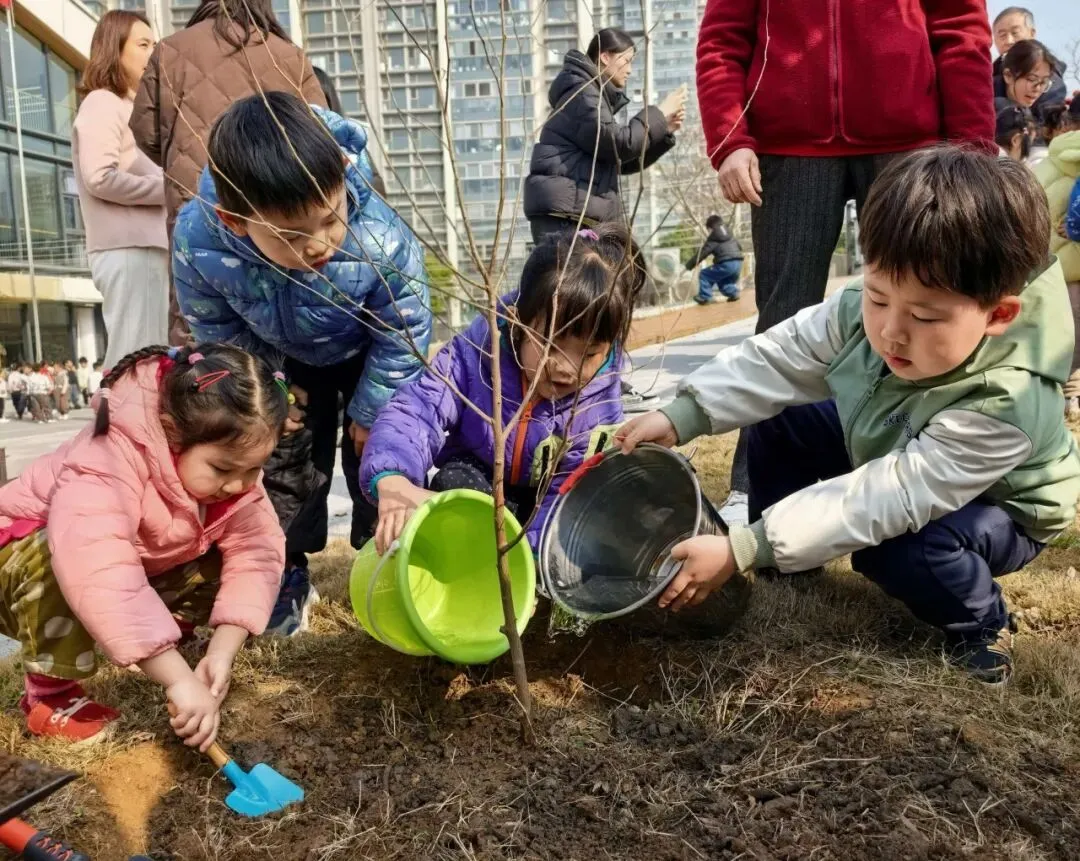 这场由童心出发、家园社携手共筑的植绿行动,不仅为幼儿园添上一抹新绿,更在孩子们心中播种下热爱生活、尊重自然的种子,让“爱・生活”课程文化在春日里悄然生长、熠熠生辉。