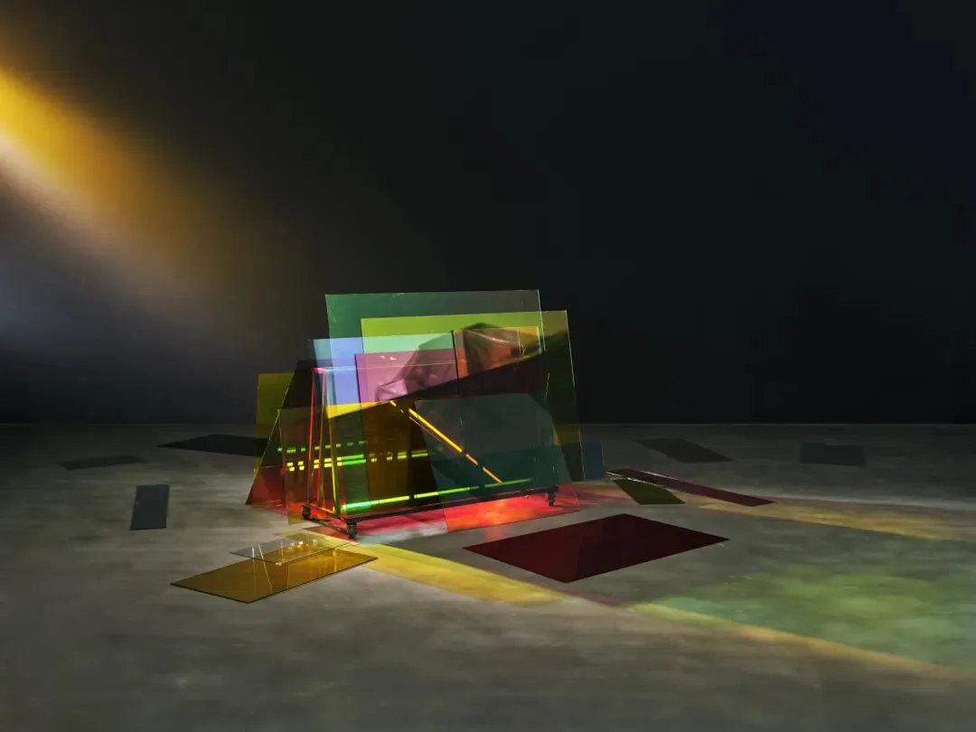 展览亦呈现陈维的重要代表性作品,如装置《许愿池》(2017)、《Goodbye(最后一夜)》(2017)及《窗花(万德福)》(2017/2021)等。这些作品通过重构城市公共空间或生活场景,揭示现实与理想之间的缝隙。《许愿池》将象征美好愿望的城市景观转化为幽暗的心理空间;《Goodbye(最后一夜)》以昏黄灯光与未完成的场景营造出生活中断后的感官剧场;《窗花(万德福)》则通过塑料袋拼贴的临时窗纸,映射城市发展过程中那些短暂却真实存在的灰色地带。