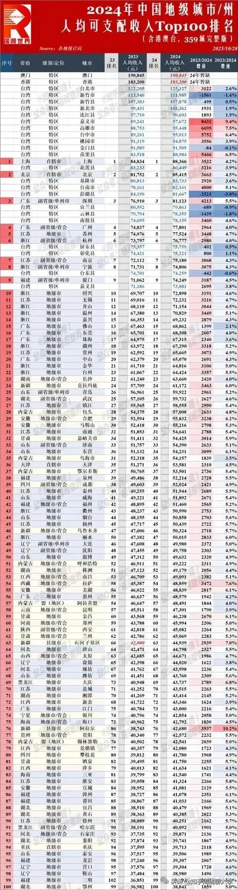 城市 | 2017收入 | 2024收入 | 增长倍数 |