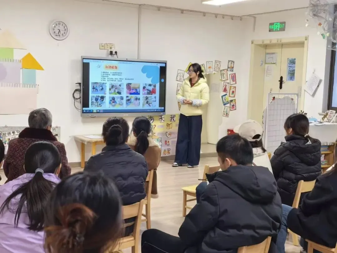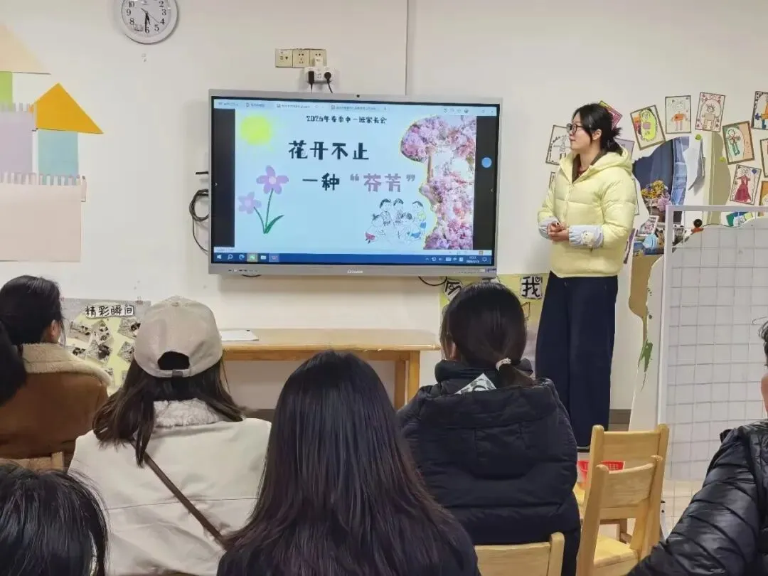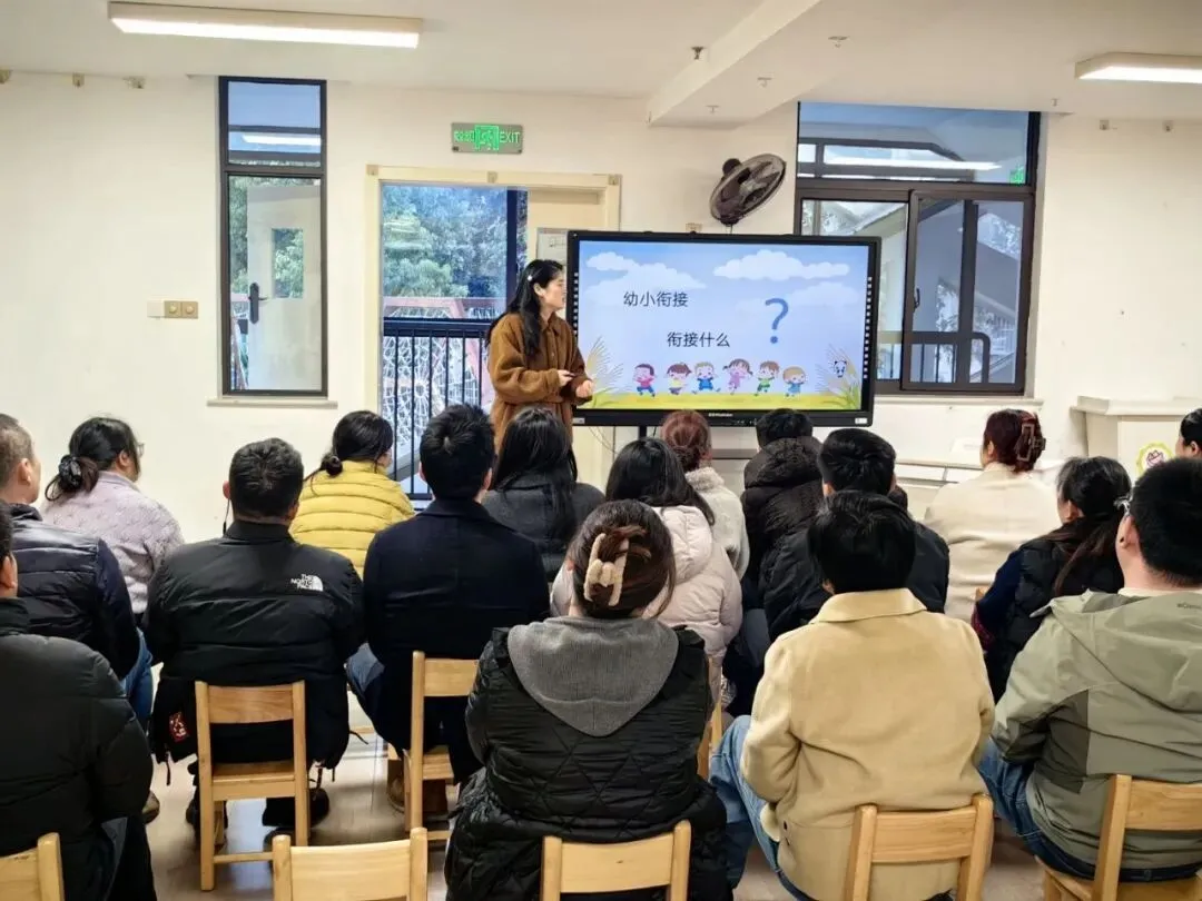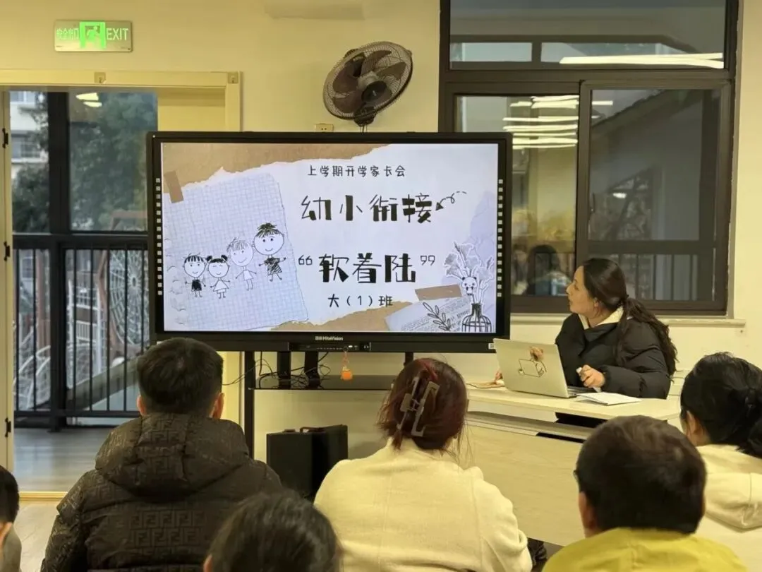讲座结束后,班级教师介绍了本学期的班级工作,特别强调了班级幼小衔接的各项活动,从身心、生活、社会、学习四方面明确入学准备要求,通过个别化学习、主题课程、特色活动等为幼儿做好衔接准备,同时也对家长的引导方式提出正向建议,帮助孩子们顺利过渡幼小衔接阶段,迎接全新的学习旅程。