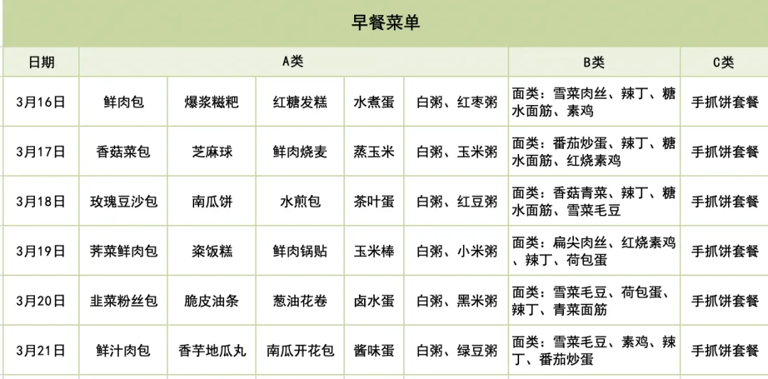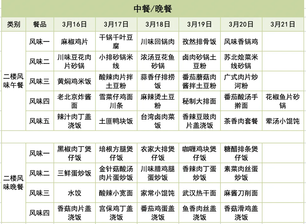 每周食谱