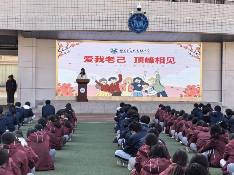 三月金陵,春寒未尽,暖意已生。2026年3月13日下午,南京市玄武高级中学高二年级全体学生齐聚一堂,以“爱我老己,顶峰相见”为主题,召开了一场别开生面、温情与力量并存的年级大会。此次大会,不仅是一次表彰先进的青春盛会,更是一场关于成长、关于自我、关于未来的深度对话。