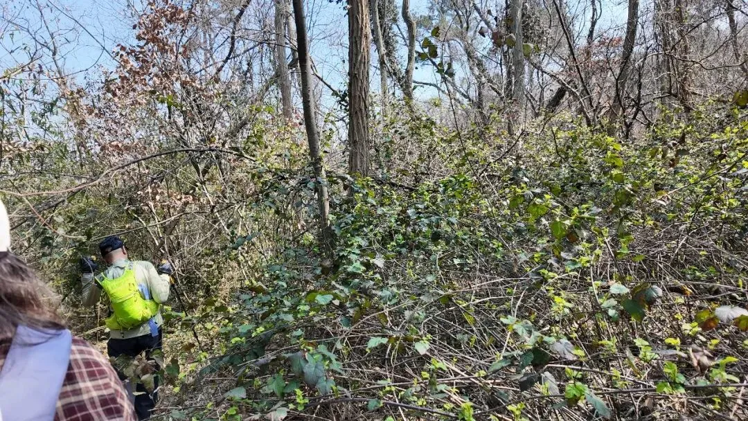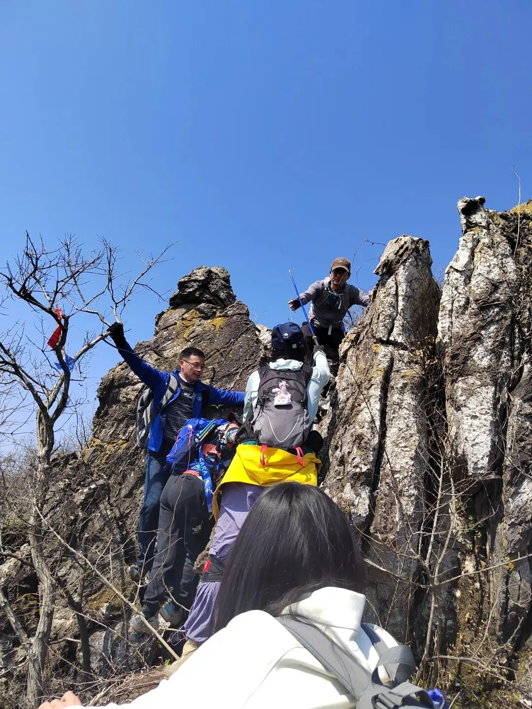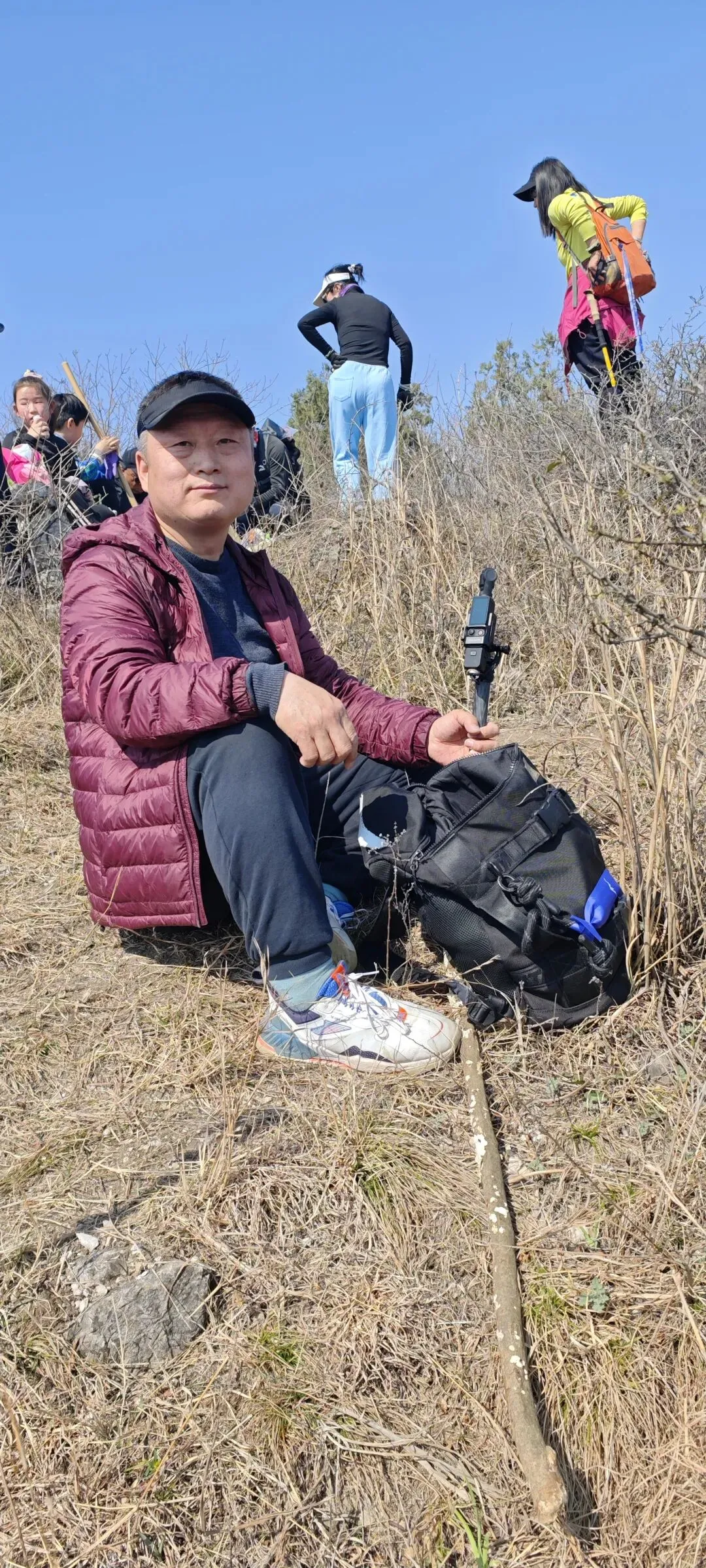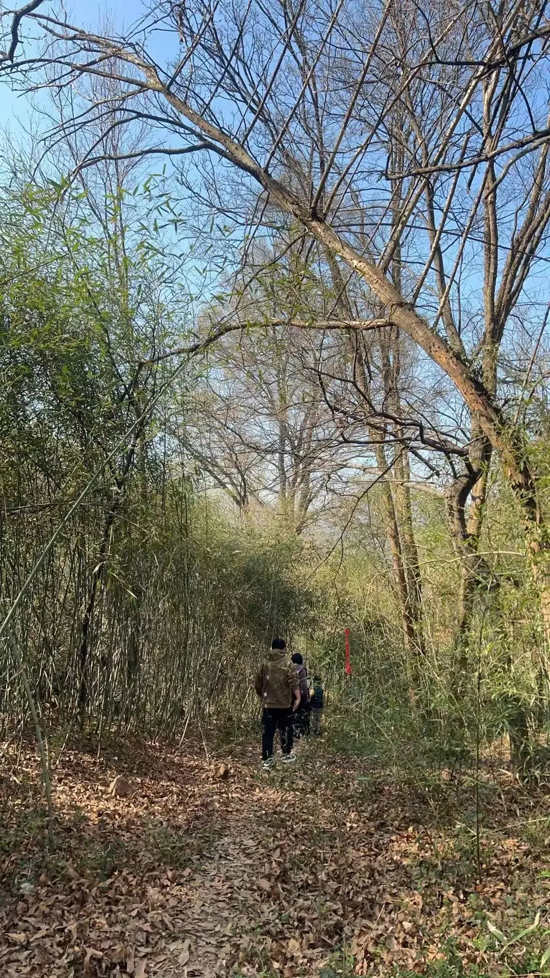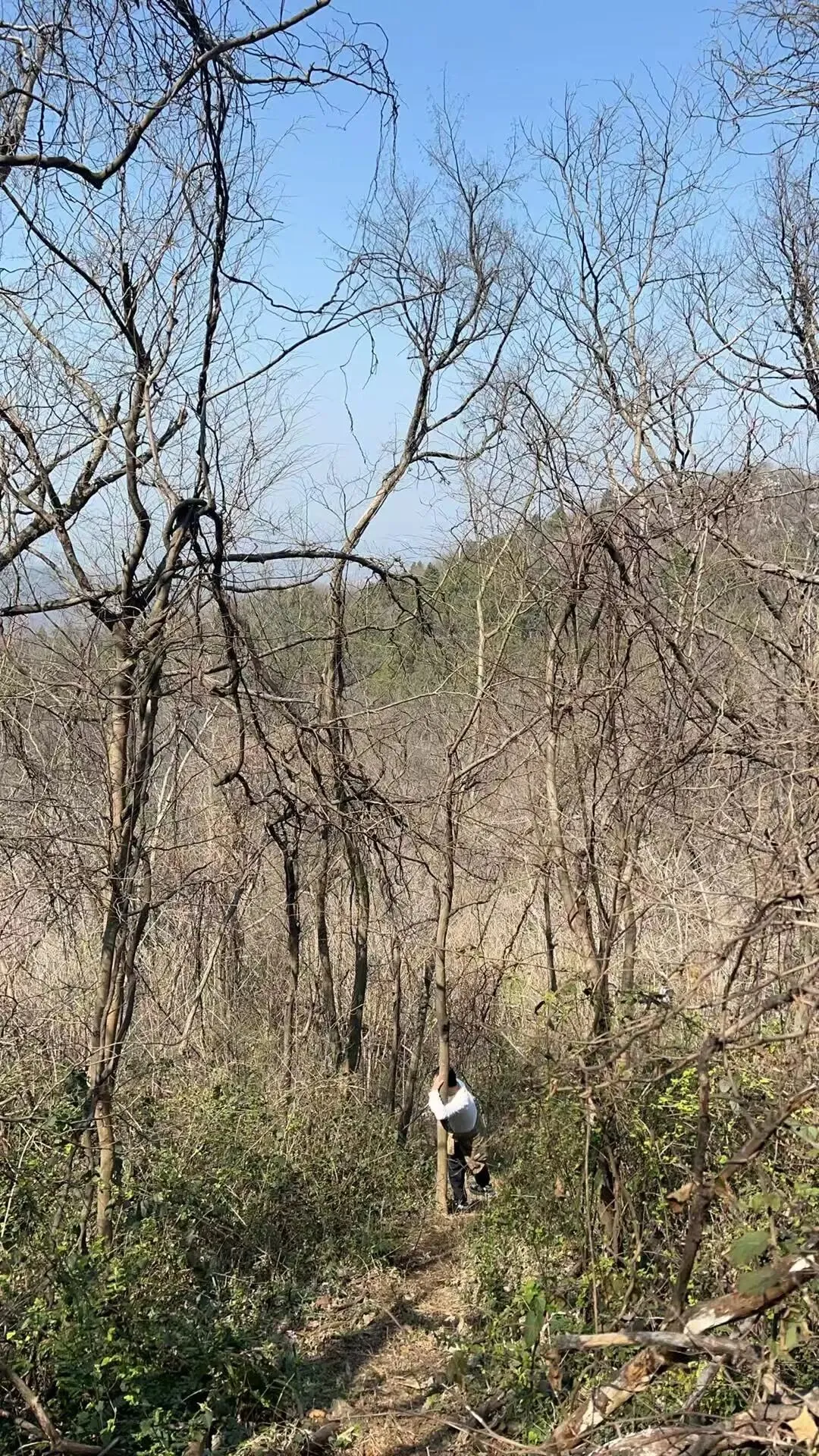 我上山过程中就在林中里找了一根硬点的枯树枝,一路拄着前行,辅助用力时,尽量依赖它,而不能随便抓身边的树丫。