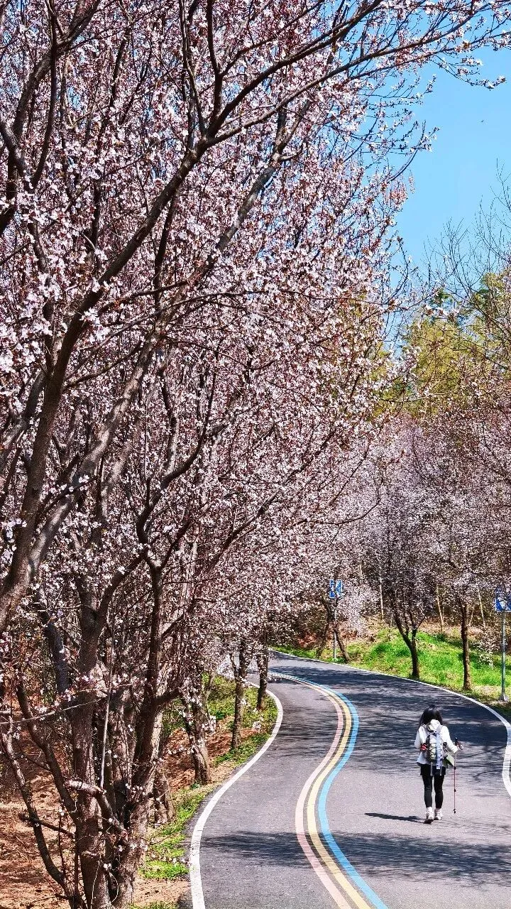 不到中午12点半,就转入了汤泉紫叶李大道。长长的彩虹路,路两侧粉粉的桃花盛开,游人如织。有一种被人间接管的感觉。
