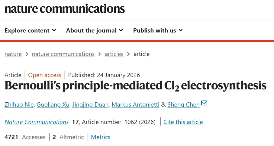南京理工大学陈胜课题组Nat. Commun.:伯努利原理介导电合成氯气!