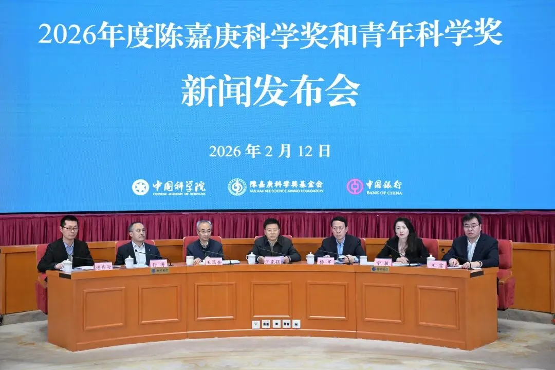 2月12日,中国科学院在京举行新闻发布会,公布2026年度陈嘉庚科学奖和陈嘉庚青年科学奖获奖名单。中国科学院副院长、陈嘉庚科学奖基金会副理事长汪克强,中国银行副行长杨军以及获奖科学家代表等出席发布会。