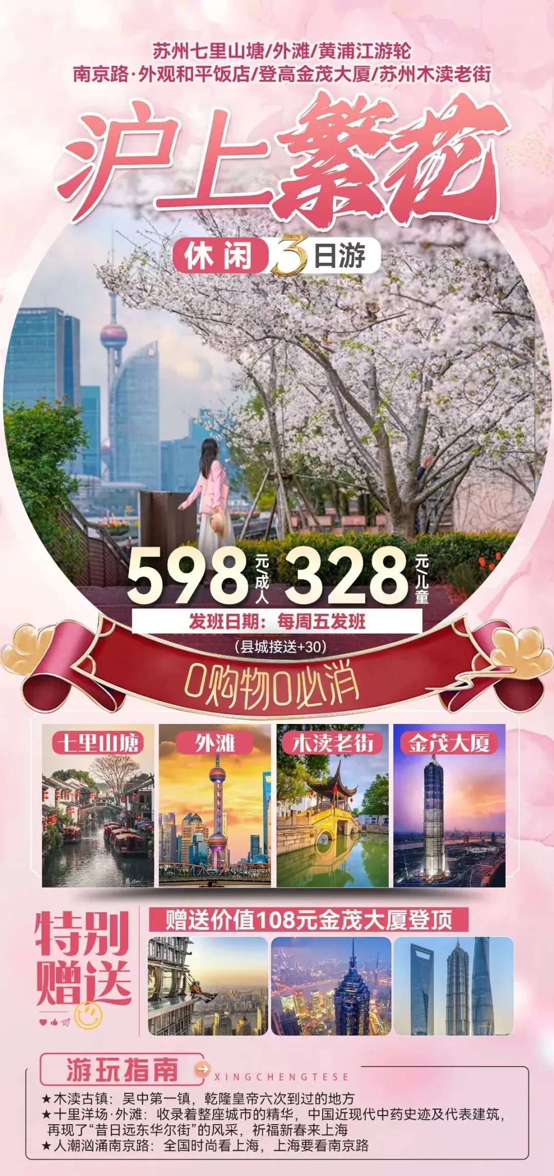 【沪上繁花】苏州七里山塘,外滩,黄浦江游轮,南京路·外观和平饭店,登高金茂大厦,苏州木渎老街3日游
