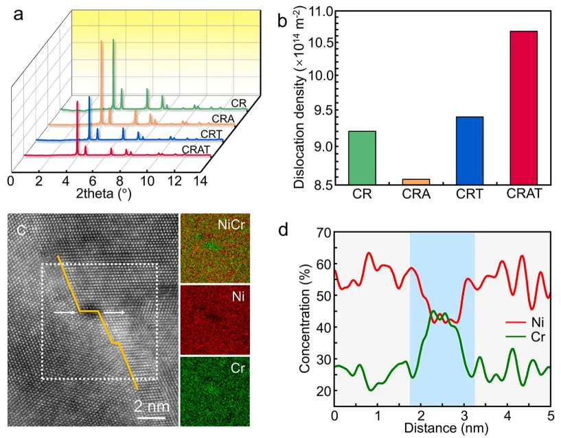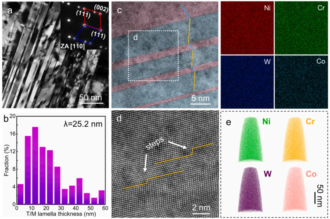 发现Cr富集区域在塑性变形过程中可作为位错运动的有效障碍,促进位错在纳米孪晶区域大量累积,显著提升加工硬化能力,从而在保持高强度的同时改善材料塑性。