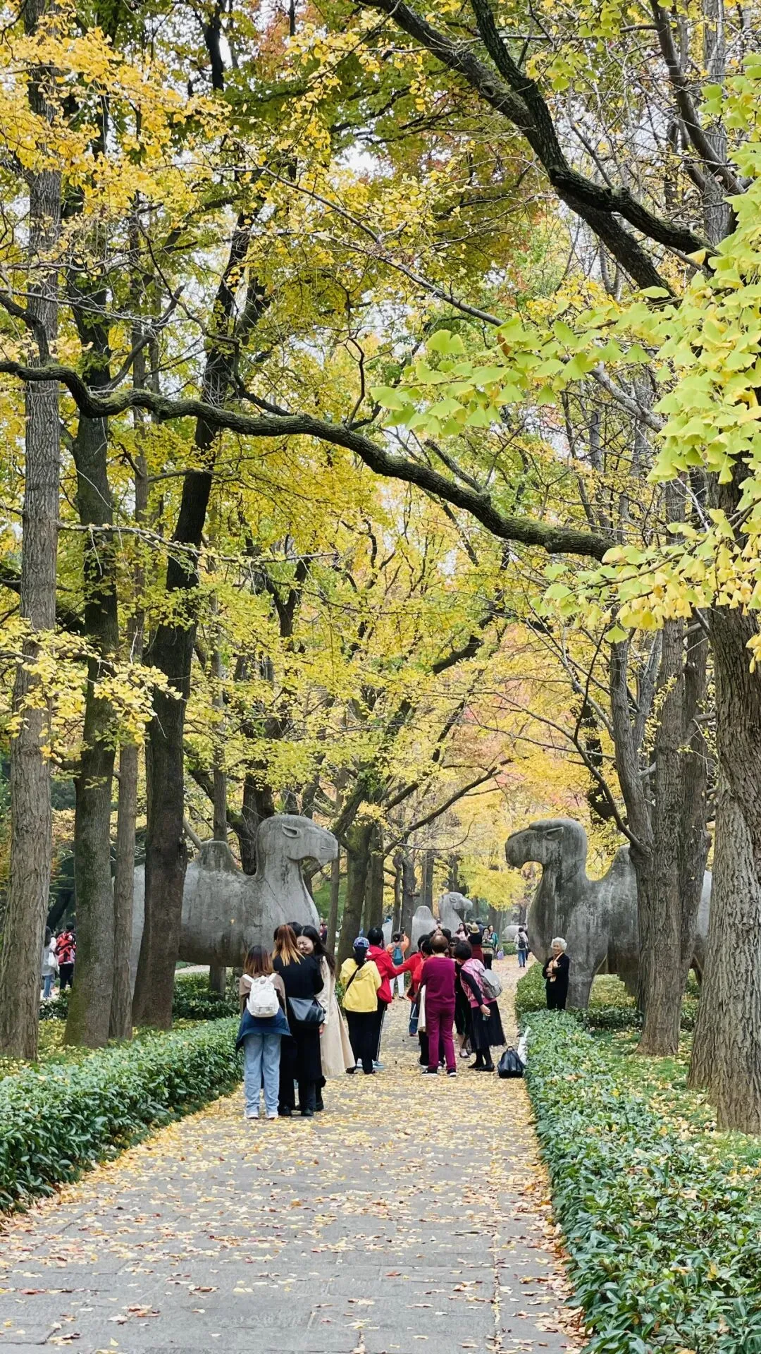 孙权虽是大帝,身后也不由己,墓后又建了朱元璋的孝陵。明孝陵是明代帝陵中最大的一个。秋天来全是金色的银杏。