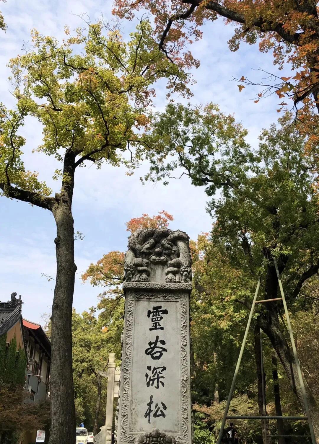 中山陵再往后是灵谷寺,极其幽静,有座九层石塔,爬上去可以一览十里松壑。这里有极多桂花树,夏秋之际有“桂子月中落,天香云外飘”的意境。