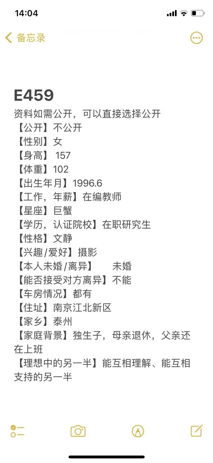 南京相亲丨95年,女,身高163,南京理工大学毕业,央企工作,年薪10万左右,南京有房有车