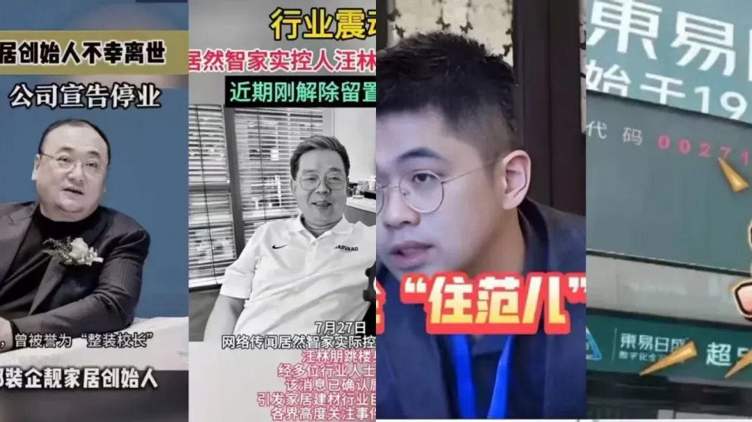 7月17华东头部装企有“整装教父”之称的靓家居创始人曾育周的离世;7月27居然之家实控人汪林朋坠楼身亡,东易日盛的退市风险警示、住范儿的关店潮、一众曾经光鲜亮丽的互联网家装巨头在这一轮周期中轰然倒塌。