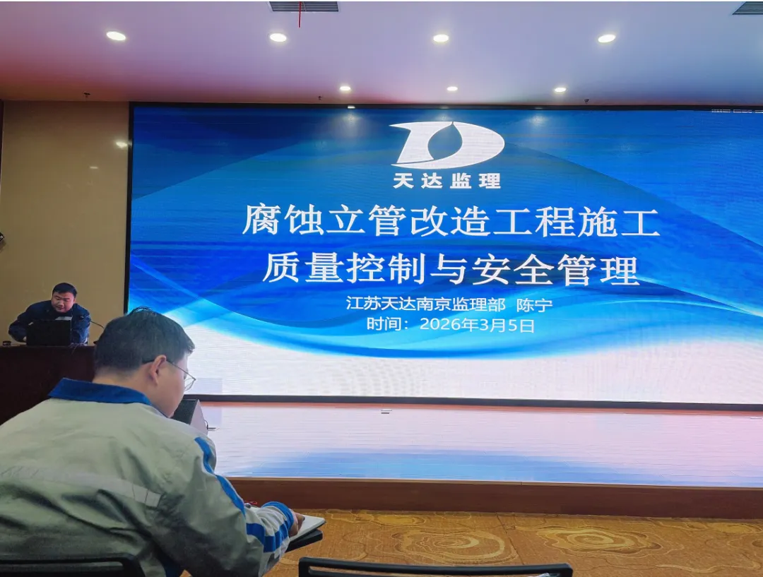 为确保2026年春节后南京港华燃气公司工程顺利开展,提升相关各方安全理念、规范安全生产行为、提高管理能力,3月5日,天达监理南京港华监理部联合南京港华燃气有限公司工程管理部,组织建设、施工、监理人员在南京港华亚东办公楼304会议室开展春节后复工复产安全培训。