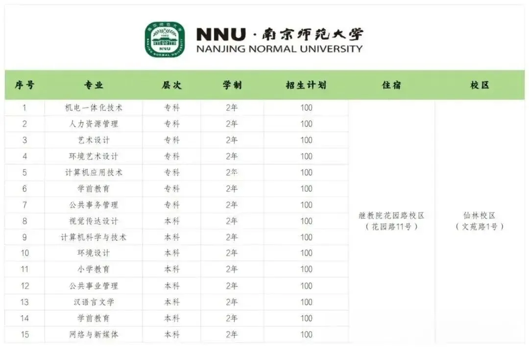 3、资源同享,环境育人:学生在南师大校区(仙林校区)进行全日制学习与生活,与统招生共享校园。