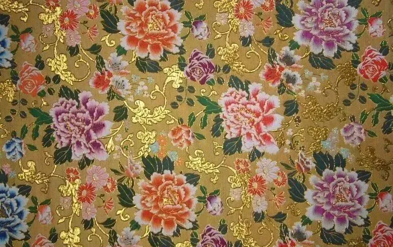 云锦主要特点是逐花异色、通经断纬、挖花盘织,从云锦的不同角度观察,绣品上花卉的色彩是不同的。