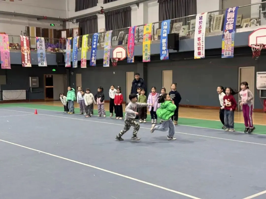 课堂上,一年级的小朋友们在老师的耐心指导下,认识腰旗、学习基本拔旗动作、练习简单传接与跑动。大家精神饱满、兴致高昂,在一次次奔跑、躲闪、配合中体验运动的快乐。没有激烈对抗,只有欢声笑语,孩子们在游戏中学习规则,在互动中提升自信,在合作中收获友谊。每一次成功拔旗、每一次默契配合,都让孩子们感受到运动带来的成就感,也让体育课堂变得更加温暖而有趣。
