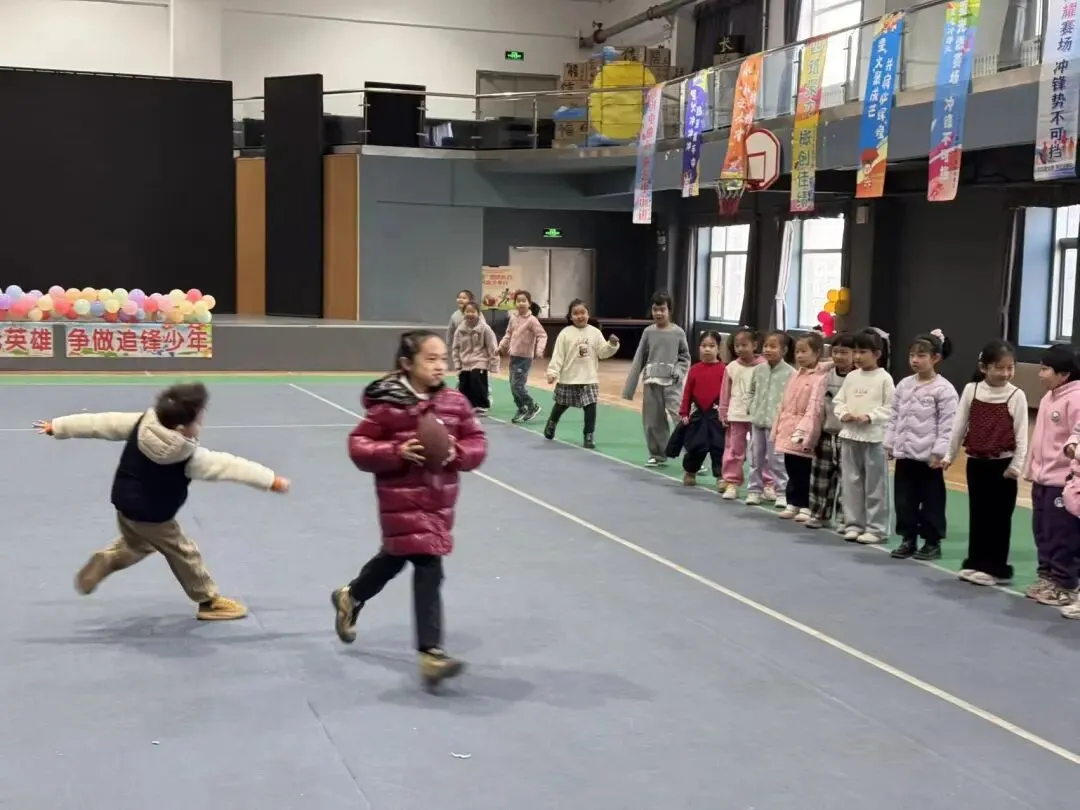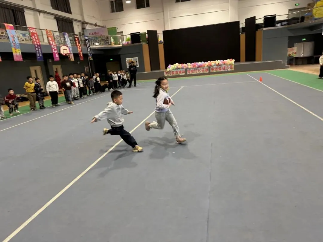 腰旗橄榄球作为一项安全有趣、易学易练的特色体育项目,也走进了我校一年级体育课堂,成为低年级学生日常运动学习的重要内容。这项运动无身体冲撞、形式活泼,十分契合一年级学生的年龄特点与运动能力,既能锻炼孩子们的身体协调性、反应力与奔跑能力,又能在轻松愉悦的课堂氛围中激发学生对体育活动的热爱,进一步丰富校园体育教学内容,让课堂更具趣味与活力。。