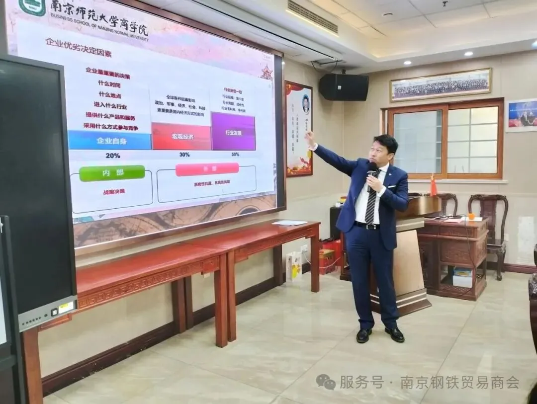本次会议干货满满,三场高规格专业分享为参会者带来深度知识赋能。南京师范大学商学院毛业皓老师作《预见未来 —— 经济周期分析与企业战略选择》分享,结合经济周期理论与宏观形势,剖析钢贸行业发展机遇与挑战,为企业战略规划提供专业指引。