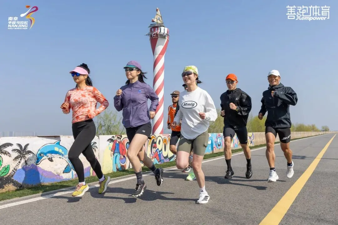 中新南京生态科技岛坐落于长江主航道之间,四面皆被江水环绕,造就了这条赛道可以看到长江映日、江豚逐浪、灯塔引航的独特自然景观。得天独厚的区位,也让选手在奔跑时,恰好可以与城市发展的现代化图景同框——在夹江侧的江堤,尽览国际化河西新城的摩登天际线;在大江侧江堤,可以远眺国家级江北新区的崭新风貌。