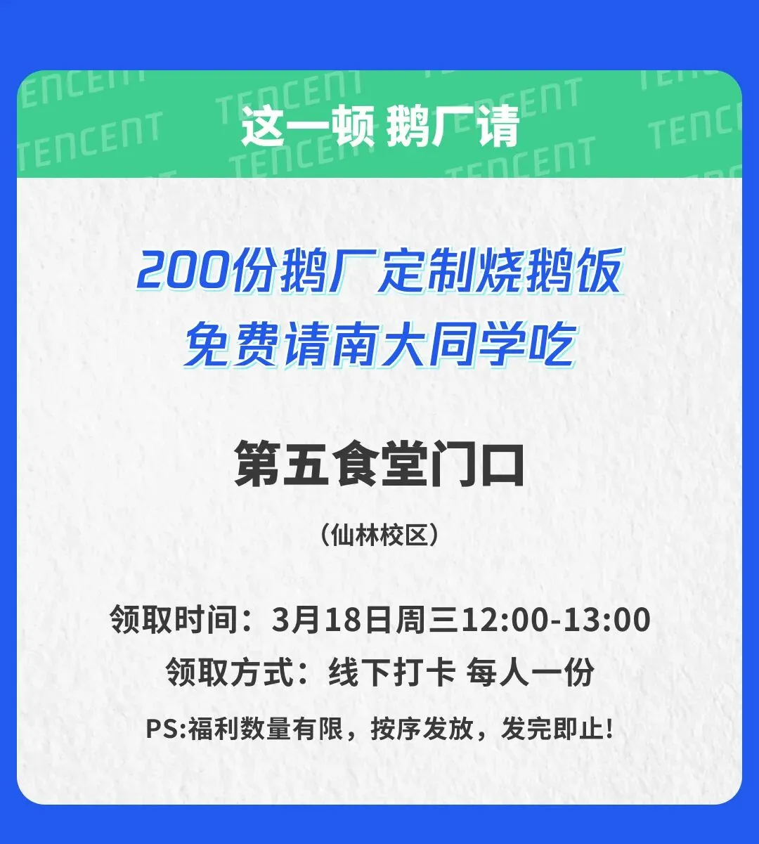 蓝鲸有礼|@南大 er!南京大学学生会 x 腾讯招聘!请你领「有鹅选鹅」霸王餐!