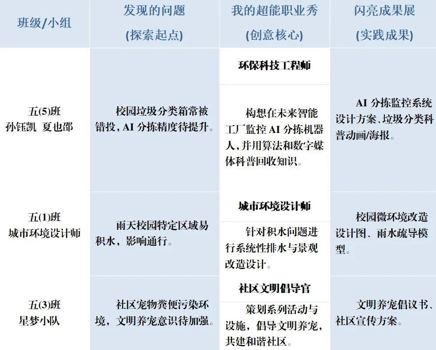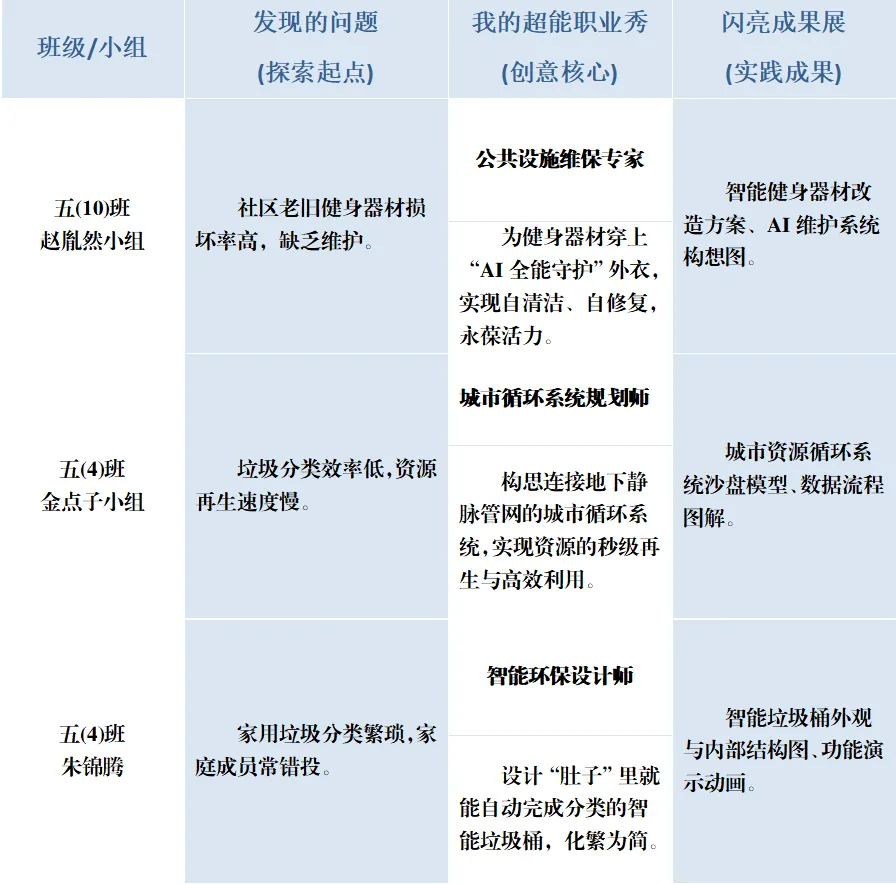 循着“想点子—试身手”的路径,五年级的同学们纷纷化身为自己梦想的“超能职业人”,用创意与技术勾勒未来的模样。