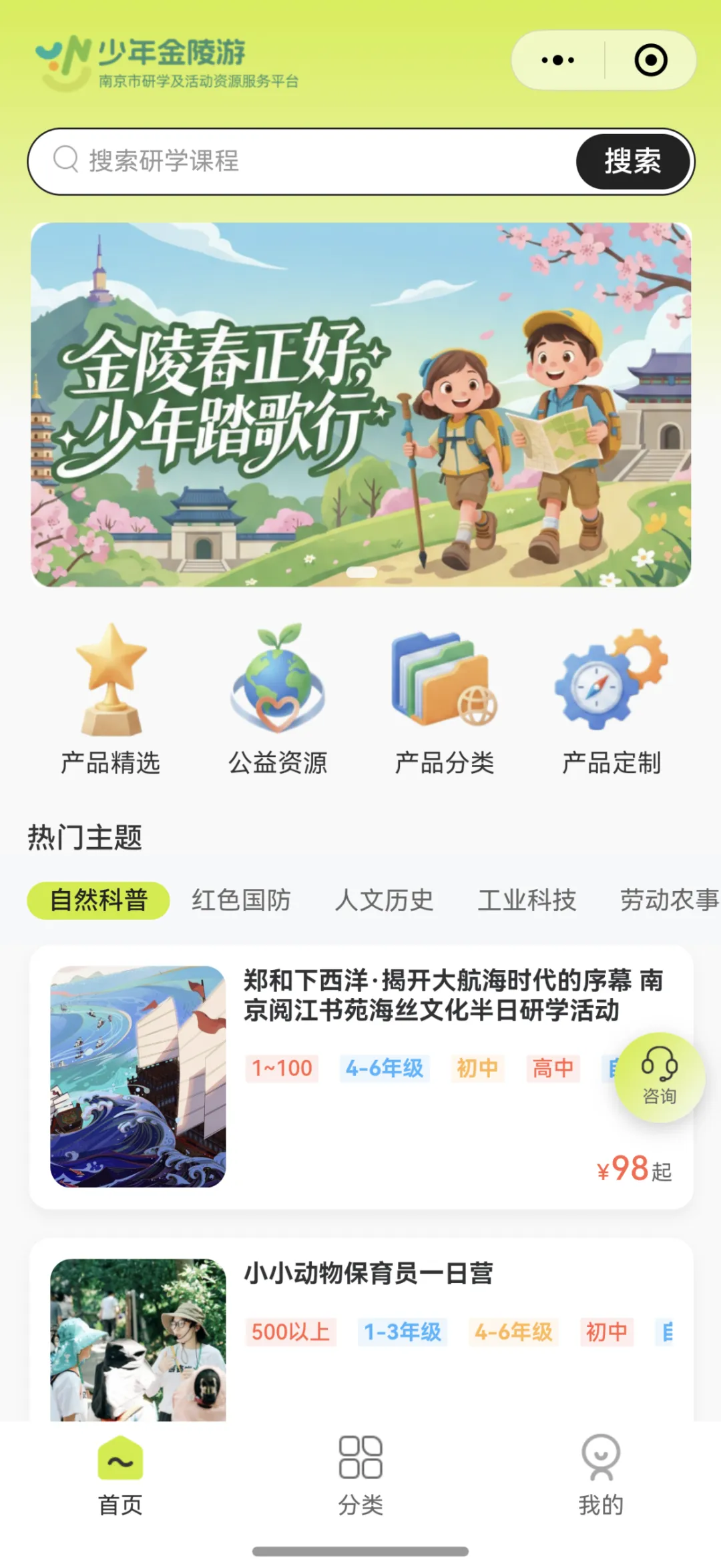 春假期间,广大学生、家长也可以通过“少年金陵游”平台,选择适合自己的特色研学项目。该平台是南京市推出的一个一站式展示优质研学和活动资源的平台,充分考虑用户触达的便利性,在微信小程序界面和“我的南京”APP上搜索“少年金陵游”就可以快速找到。