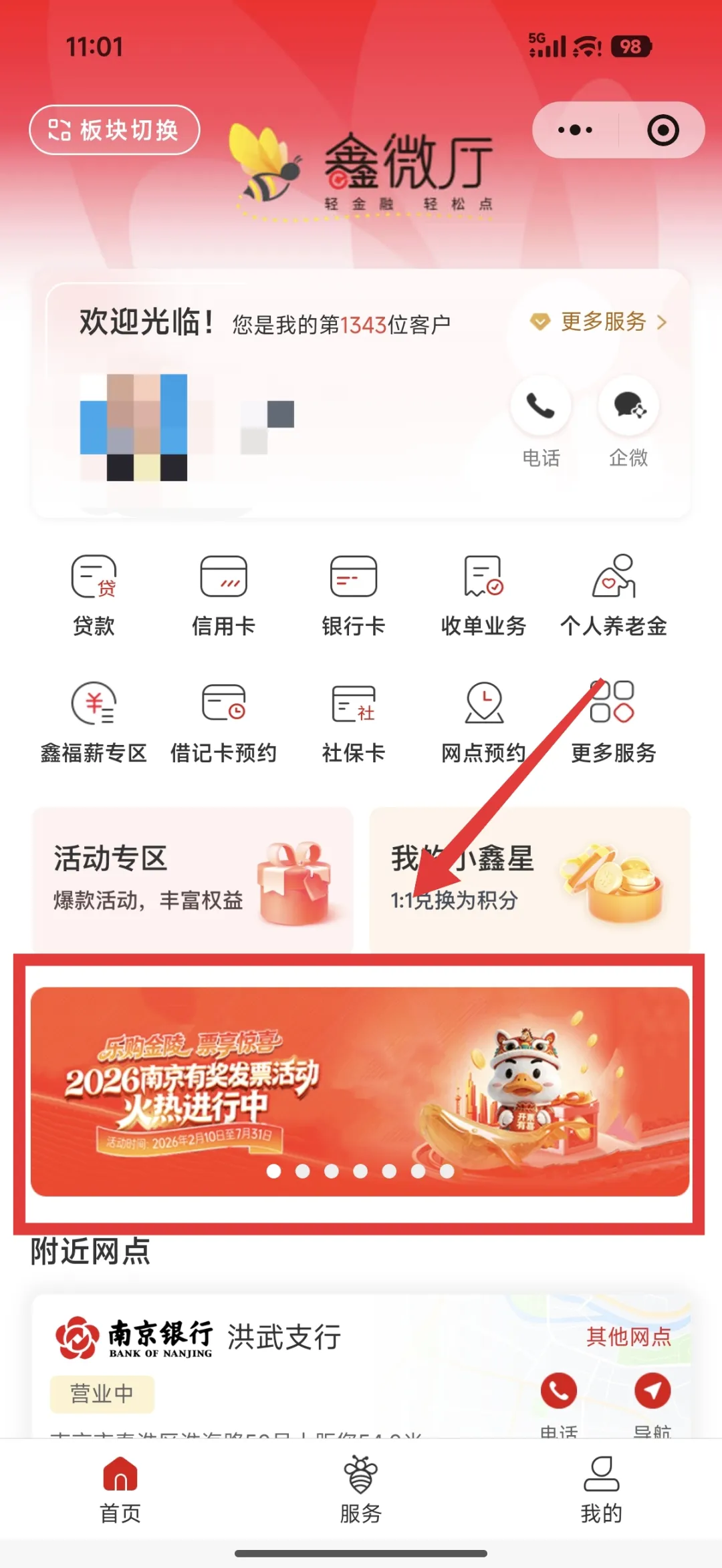 · “南京银行鑫微厅”微信小程序:首页点击“乐购金陵 票享惊喜”活动入口上传;
