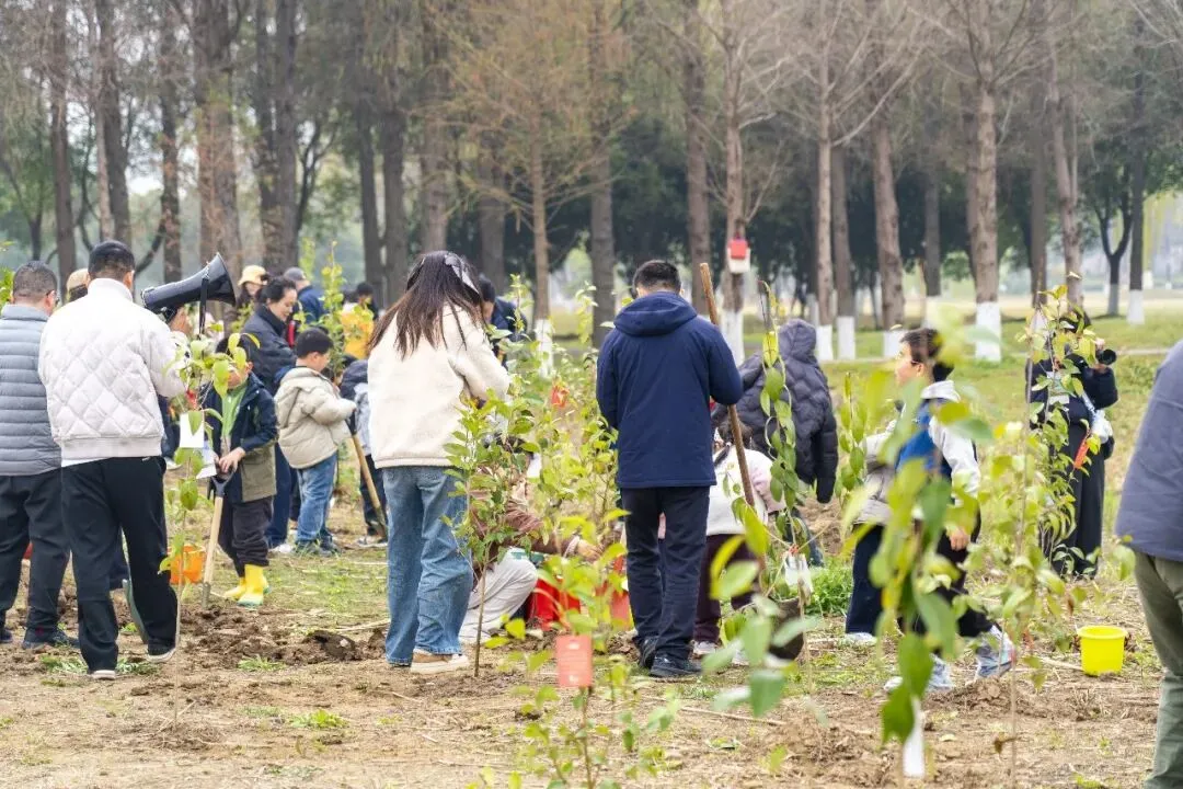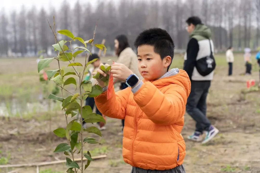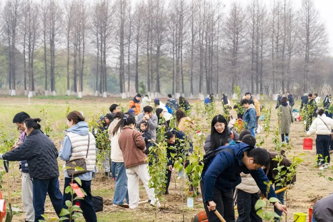 植树区,大家挥锹培土、提水浇灌,合力种下一棵棵树苗,并悬挂写满祝福的心愿牌,将自己的美好愿望寄托于绿意之中,手植春光,向下扎根,向上生长!