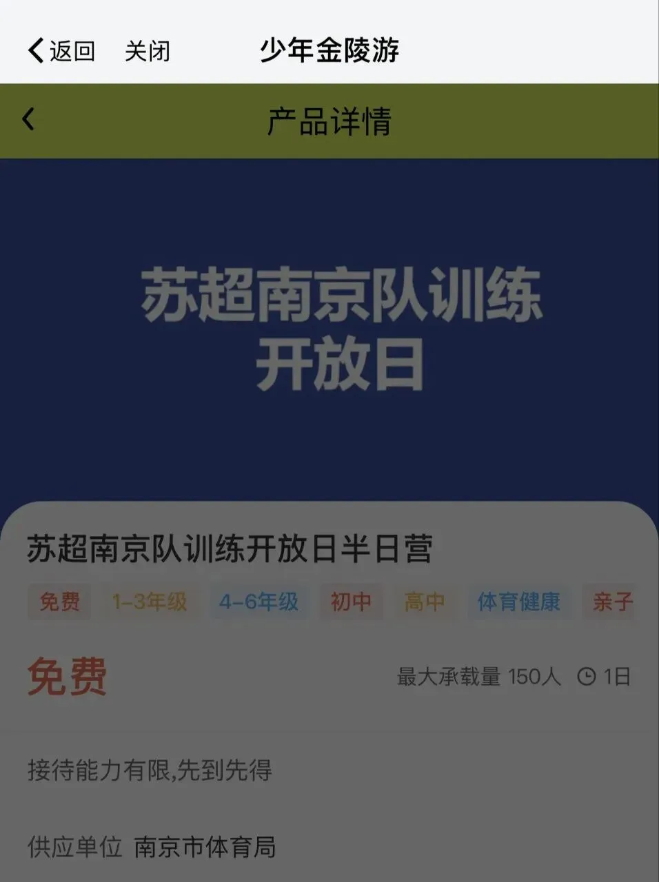 “少年金陵游”是南京市为了青少年身心健康和快乐成长而打造的服务平台,由南京文旅集团莫愁科技承担开发建设和运营服务工作。这个平台的起因是在一次座谈会上多名中小学校长共同建议:南京打造一个一站式展示优质研学和活动资源的平台,通过不断发掘优质产品与资源并架设产业与用户之间的桥梁,为“家校社”联合育人体系的搭建添砖加瓦。
