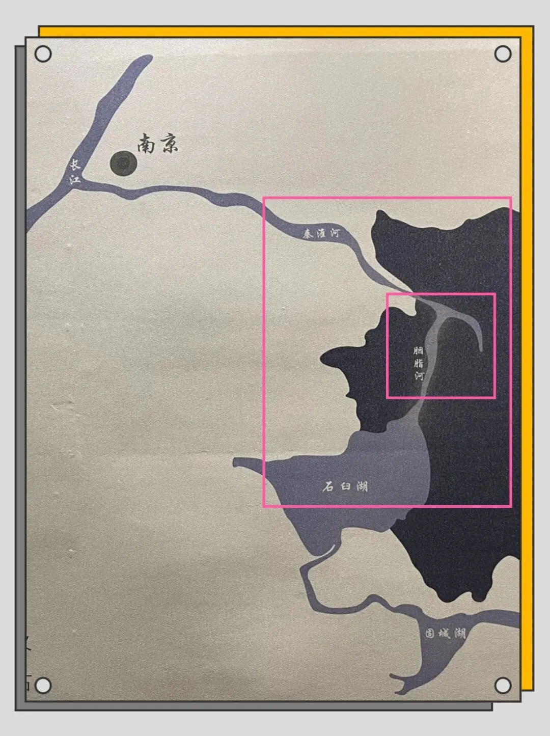 佇立于此南京·溧水名胜。在介绍胭脂河之前,得先说说这条河的区位;我们不妨可以参看如下这幅溧水博物馆内的翻拍图(局部)——