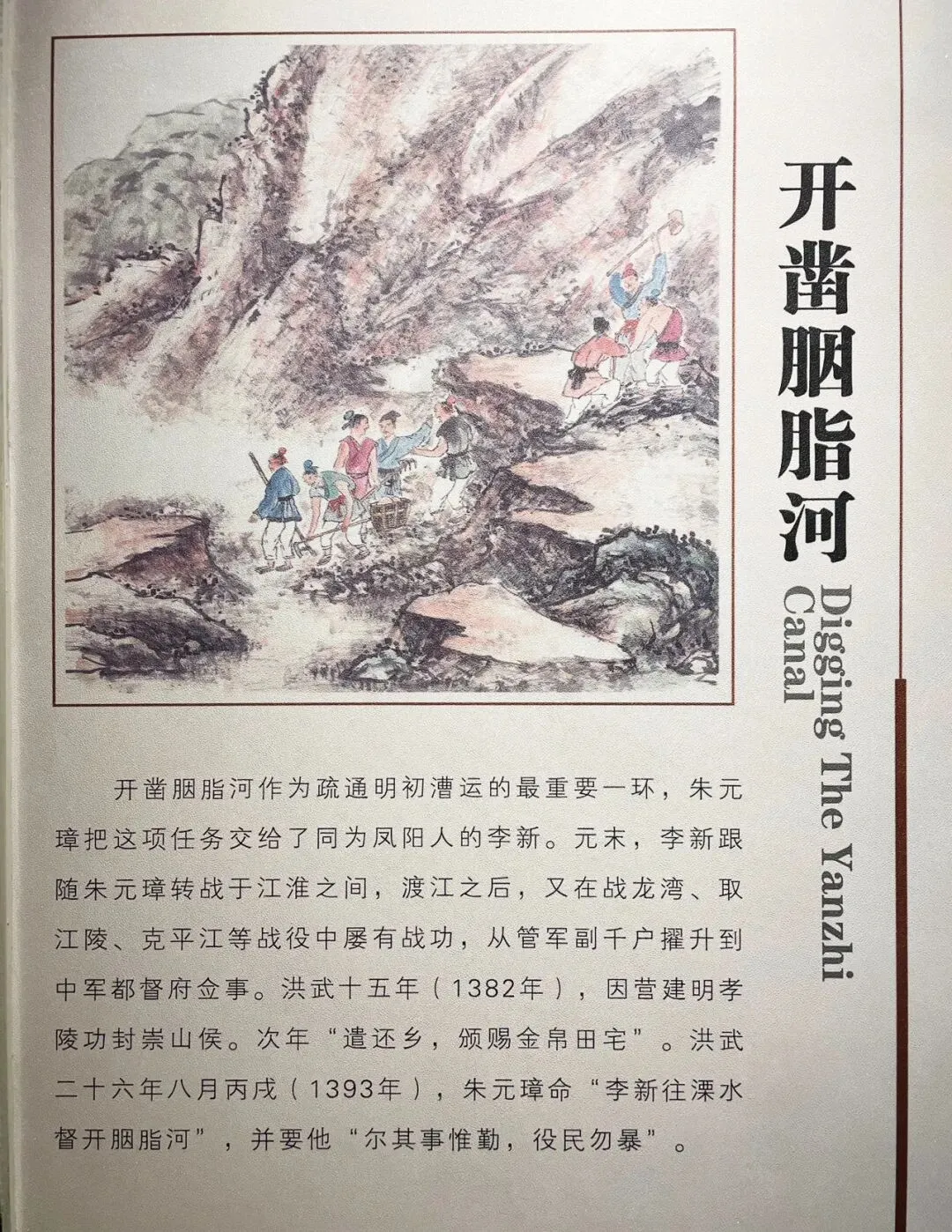 下图是溧水博物馆内有关当年在胭脂岗开凿胭脂河的图文展版翻拍——