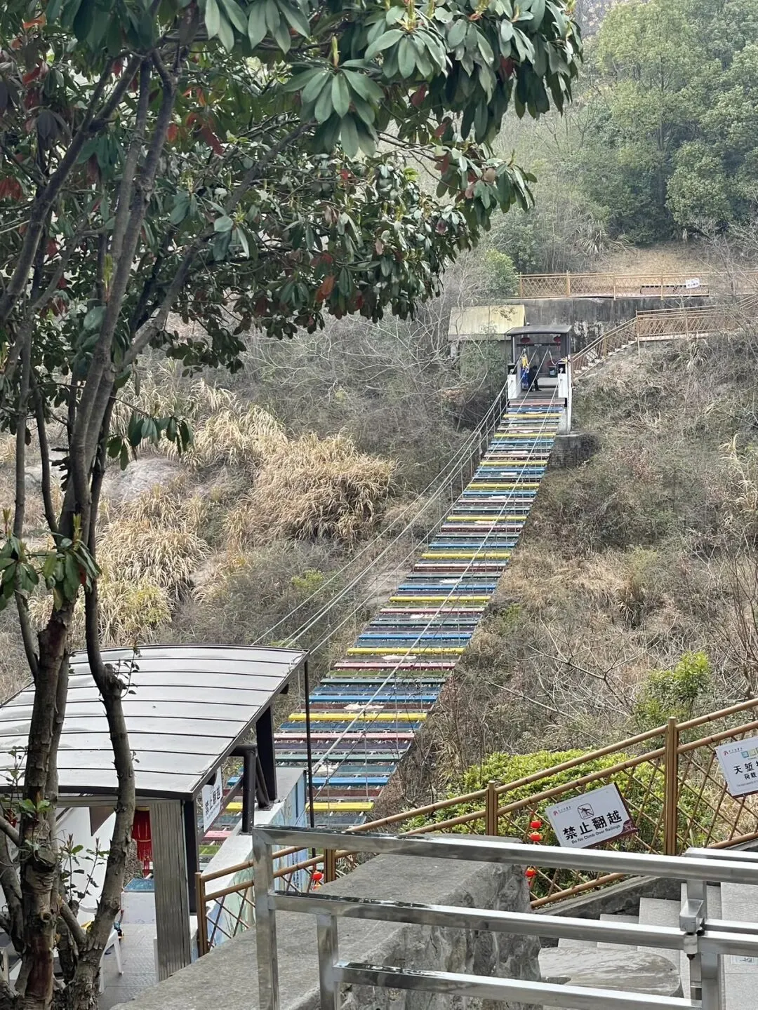 下图是游客在胭脂峡边“迷你”观景台看天生桥——