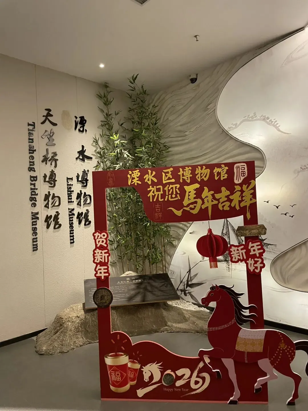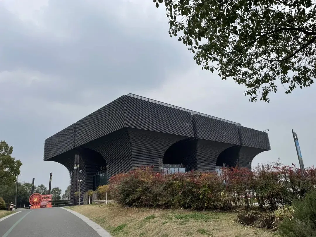 进了游客中心大门,内里宽敞,显得游客不多。免费入园,首先看到的立面造型很有特点地溧水博物馆建筑——