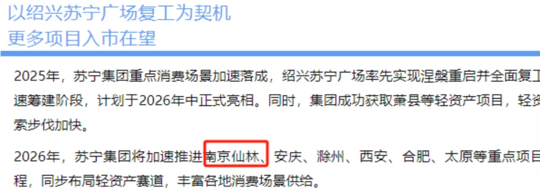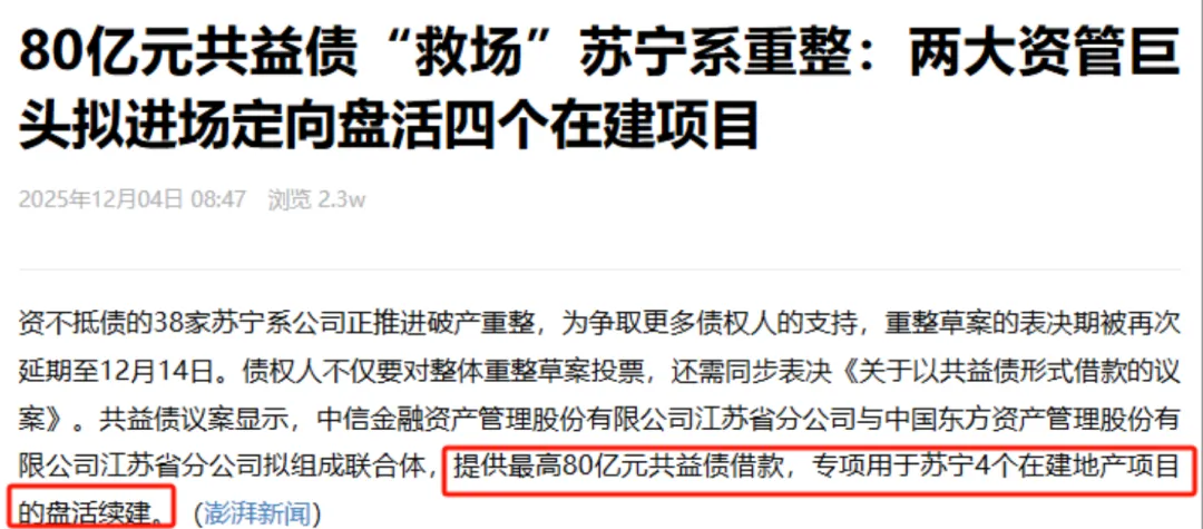 随着苏宁系重整获80亿元共益债支持,首期资金将优先用于该项目复工:
