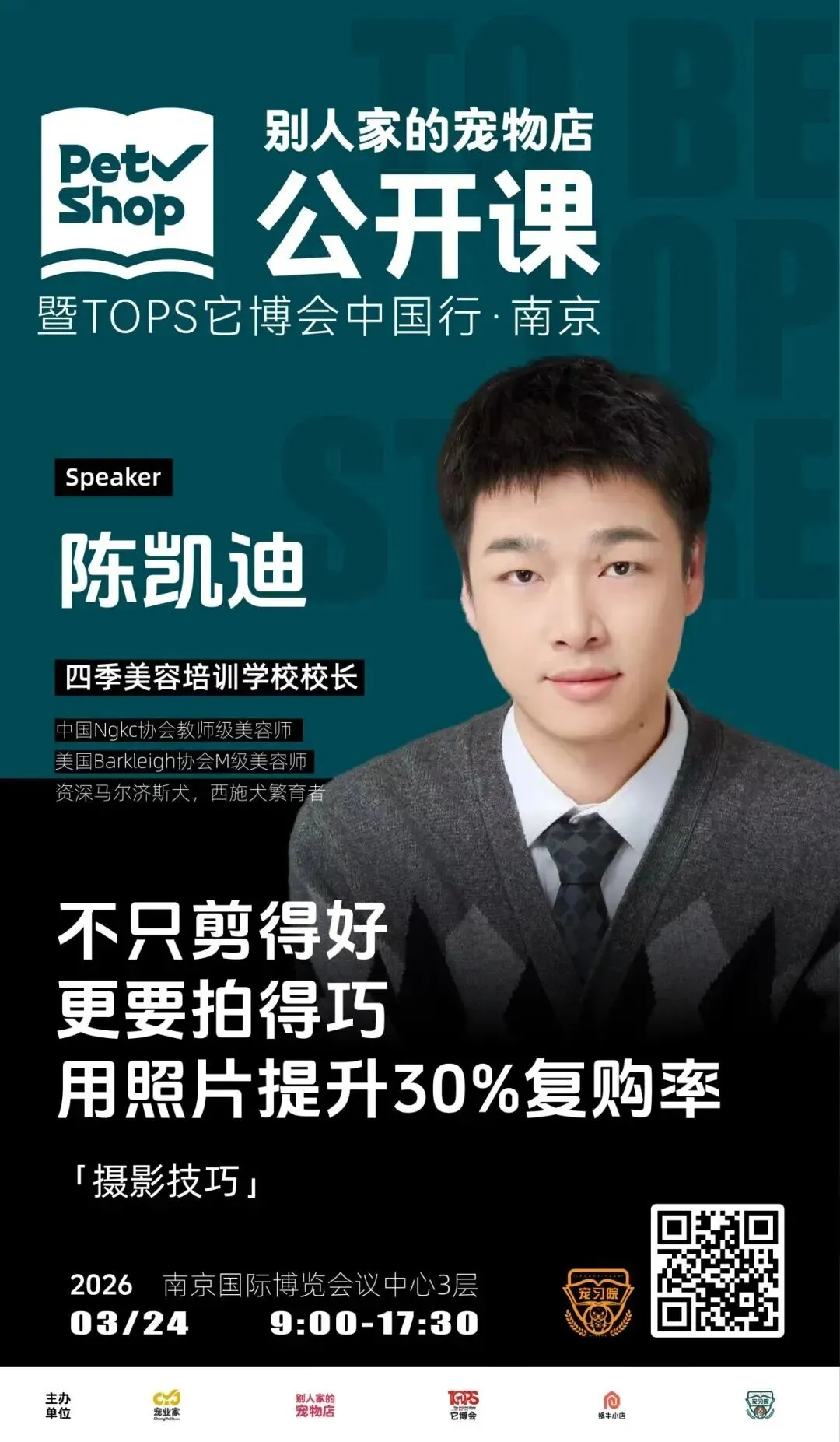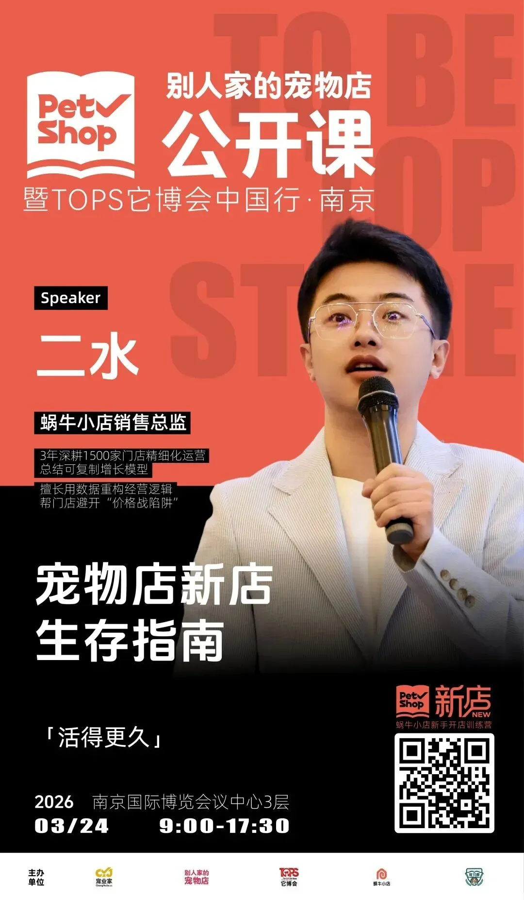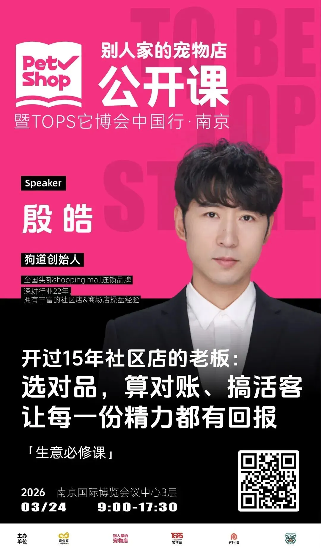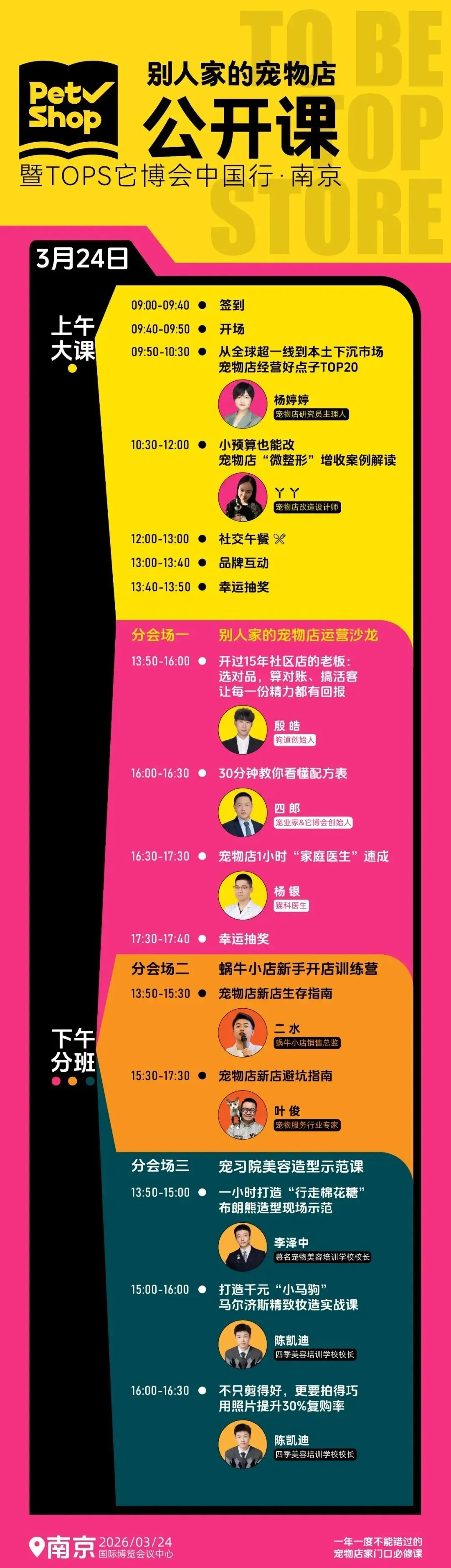 3月24日,2026年“别人家的宠物店公开课”全国巡回首站,落地南京国际博览会议中心!用一天时间,从全球趋势、门店改造,到实战运营、美容增收,全链路拆解经营方法。核心就聊一件事:怎么帮门店省钱(节流)、赚钱(开源)!