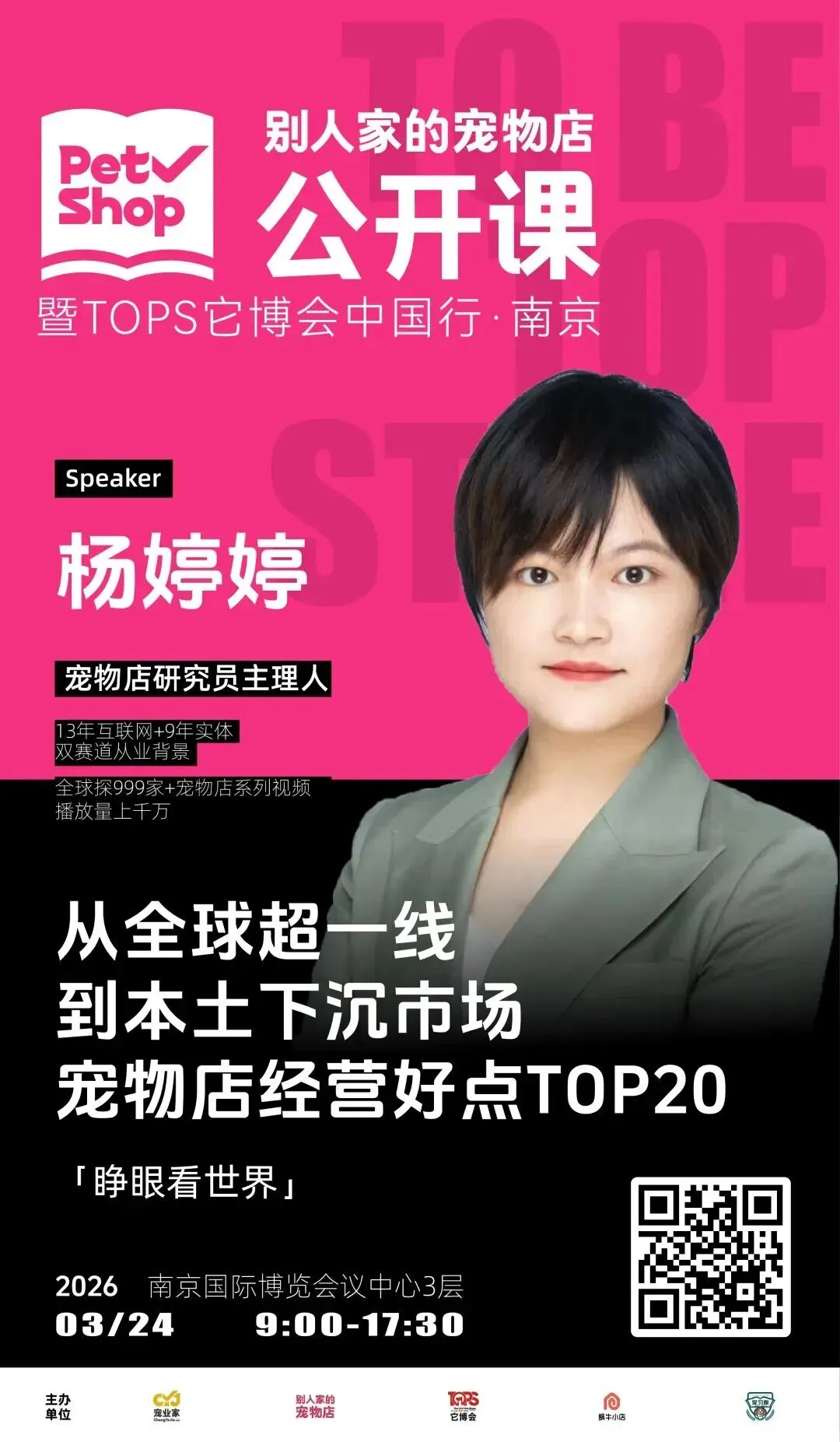邀请到了全球探店博主、宠物店研究员主理人杨婷婷带来《从全球超一线到本土下沉市场:宠物店的经营好点子TOP20》,解锁全球各地优秀经营玩法,适配本土市场直接落地,打破经营思维局限。