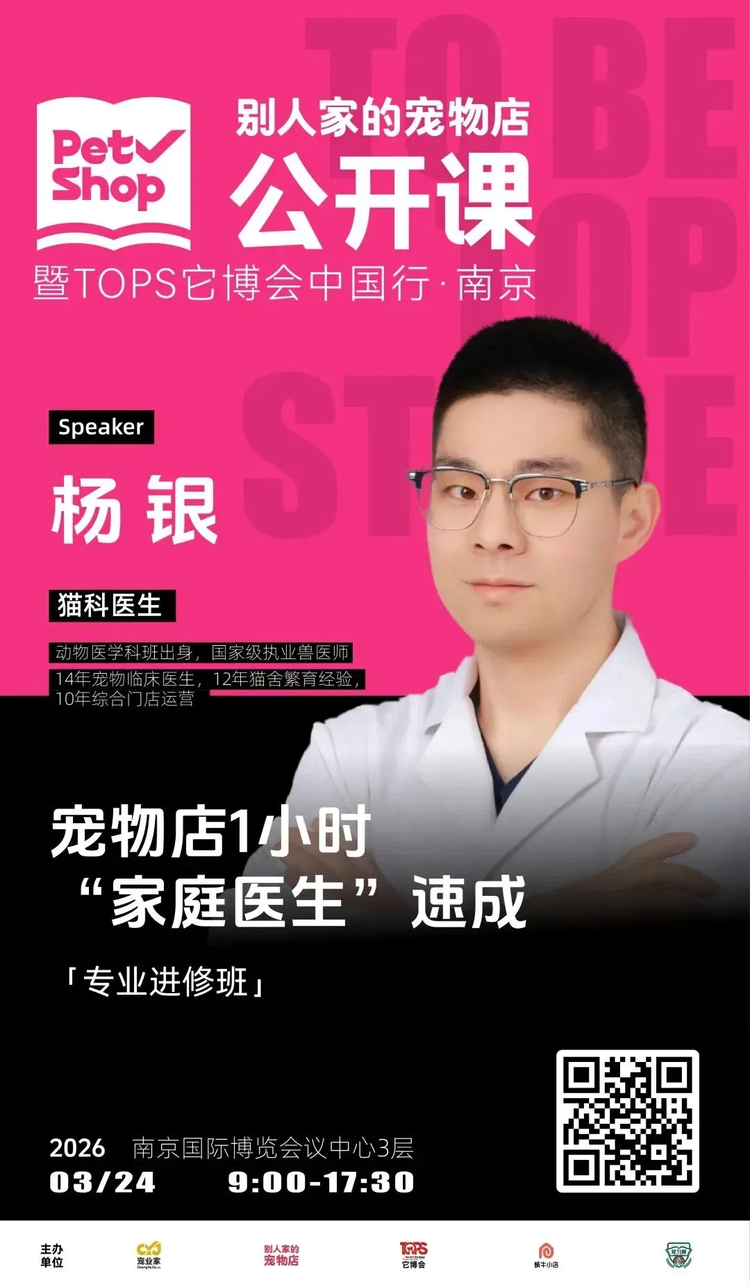国家级执业兽医师杨银:《宠物店1小时“家庭医生”速成课》,教门店掌握基础医疗知识,解决宠物基础健康问题,用专业服务留住老客、吸引新客。