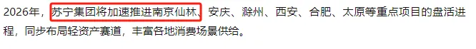 今年1月苏宁置业在开年总结会上,高调宣布:将加速推进南京仙林等重点项目的盘活进程。