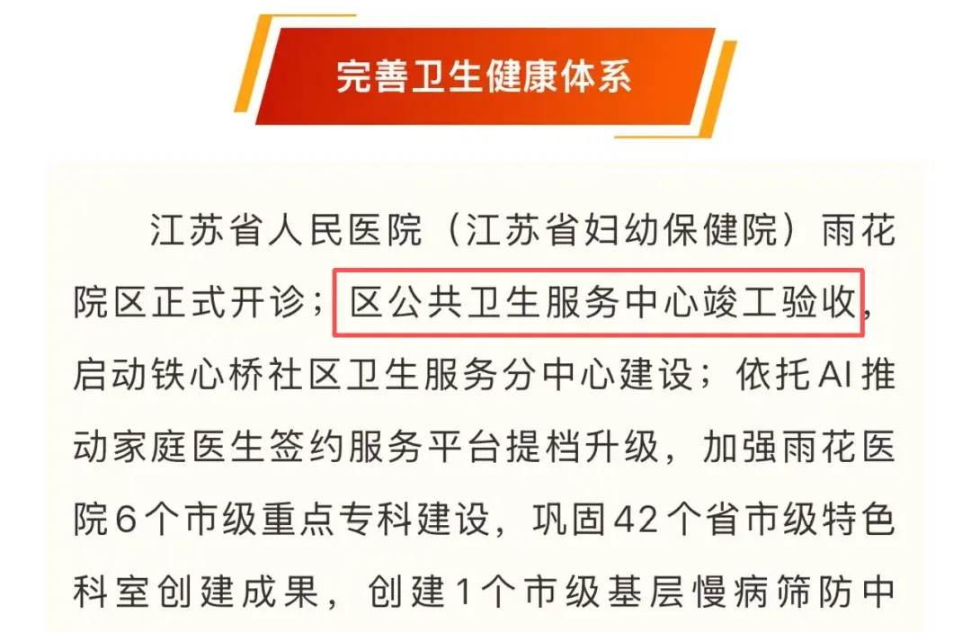 根据之前规划,瑞尔大厦将改造为雨花台区公共卫生服务中心。2026年雨花台区民生实事项目中也提到“区公共卫生服务中心竣工验收”。