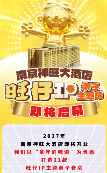 神旺大酒店官方曝光了南京项目最新装修,将打造旺仔IP亲子主题房,效果图曝光。这意味着,这座停摆接近20年的江宁地标,即将迎来复活!