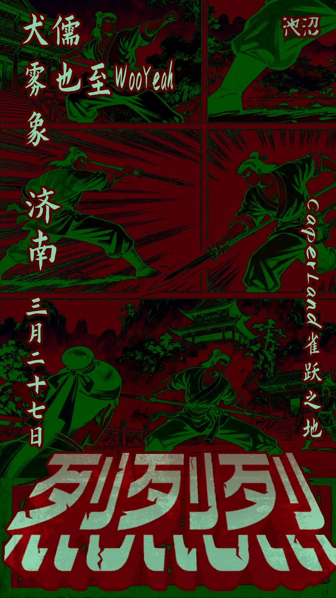 「烈烈烈」是中式架空武侠厂牌「池沼ChiZhao」旗下的系列演出企划,每一个现场,都发生在充满“热烈”和“快意”的平行世界里,江湖儿女、恩怨情仇,若想感受,请到烈害烈害烈害的现场来!