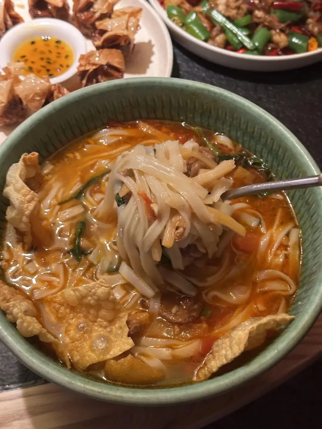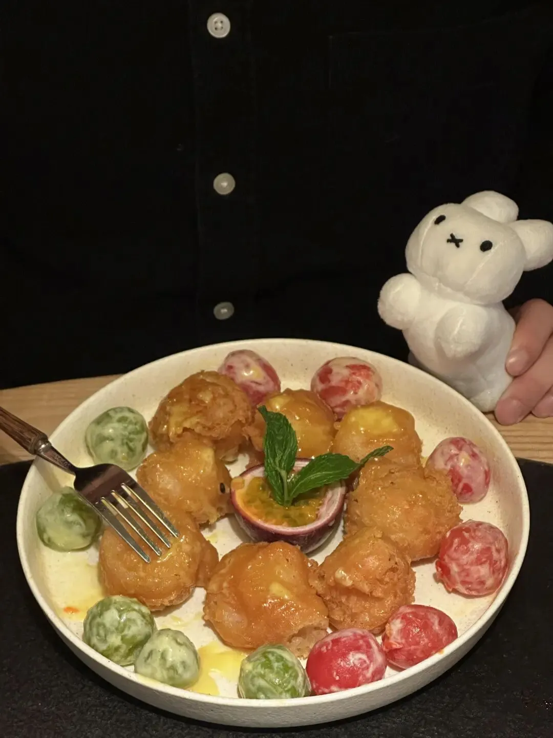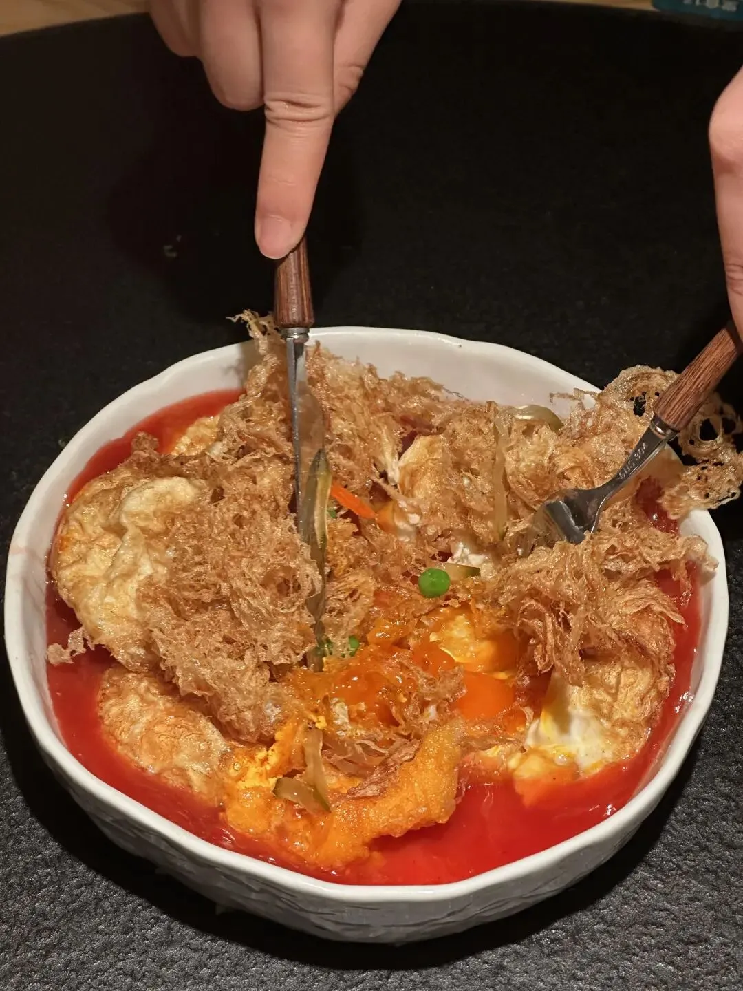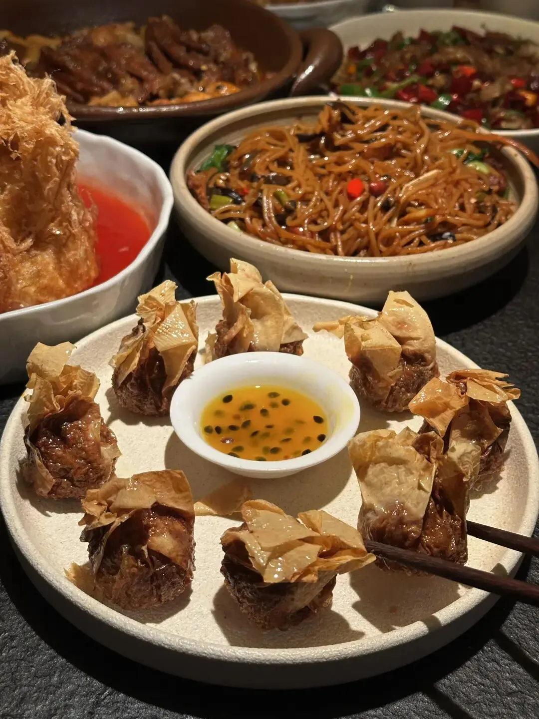 终于吃上这家广西菜了!百香果虾球第一次见!!脆脆嫩嫩,好喜欢这一口!而且个头很大!油炸过超级香!还带着果香!番茄流心炸蛋不止造型貌美,切开流心,吸饱了汁水,太美味了!!胸口油爆炒鸭掌筋这两个食材谁想出来搭配在一起的!胸口油油润但越嚼越香!爆炒螺狮粉吃起来幸福得要死!碳水大满足!牛油果芋头碎和香香芋头夹也是芋头星人的最爱!