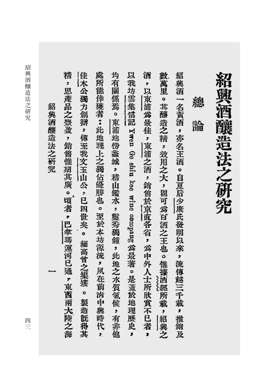 紹興酒釀造法之研究 周清編著 新學會社,一九二八年鉛印本
