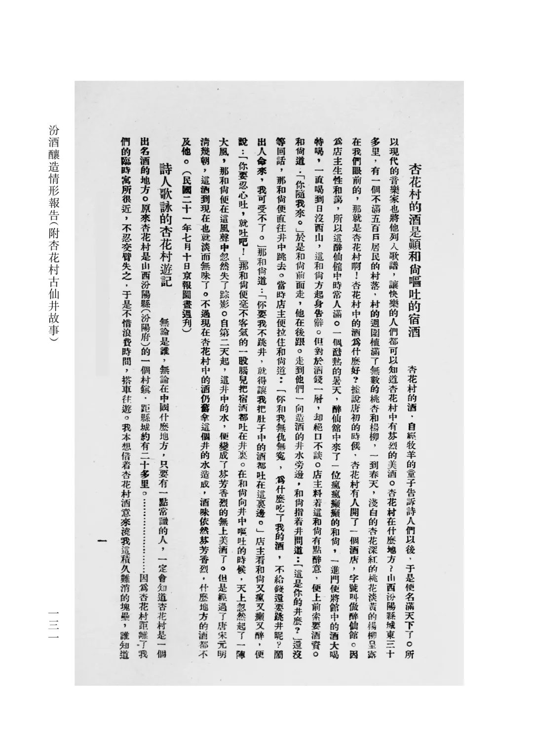 汾酒釀造情形報告(附杏花村古仙井故事) 方心芳編 黄海化學工業研究社,一九三四年鉛印本