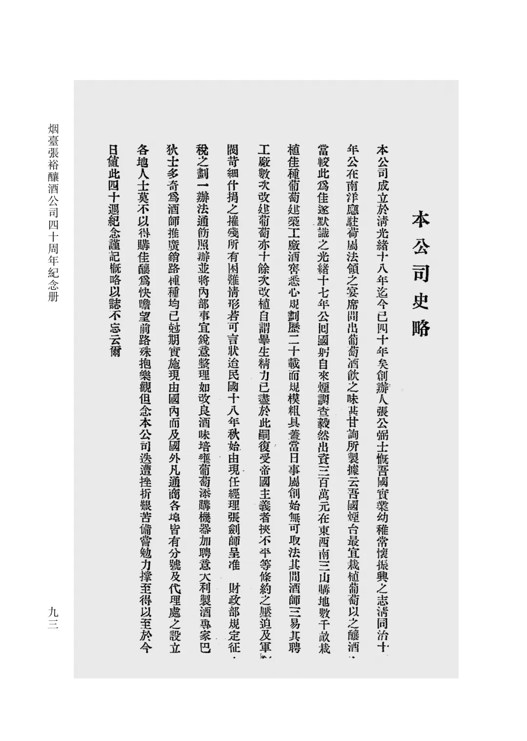 烟臺張裕釀酒公司四十周年紀念册 烟臺張裕釀酒有限公司編 烟臺張裕釀酒有限公司,一九三二年鉛印本