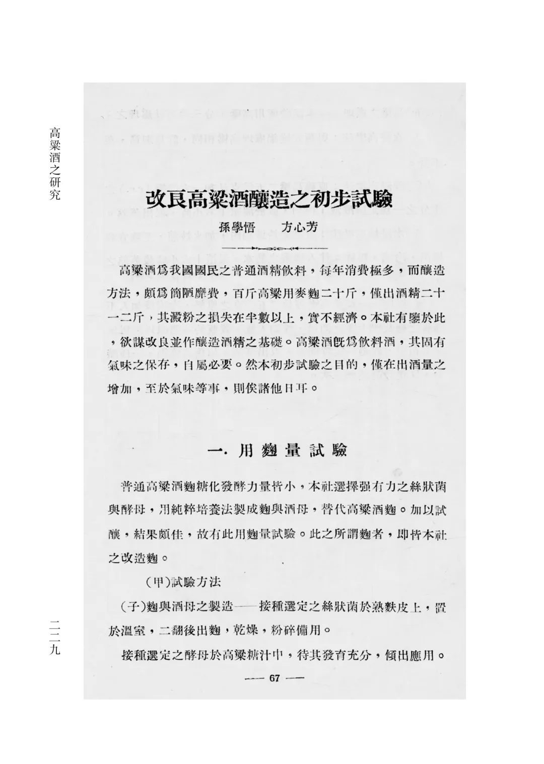 汾酒用水及其發酵秕之分析 孫穎川、方心芳著 黄海化學工業研究社,一九三四年鉛印本