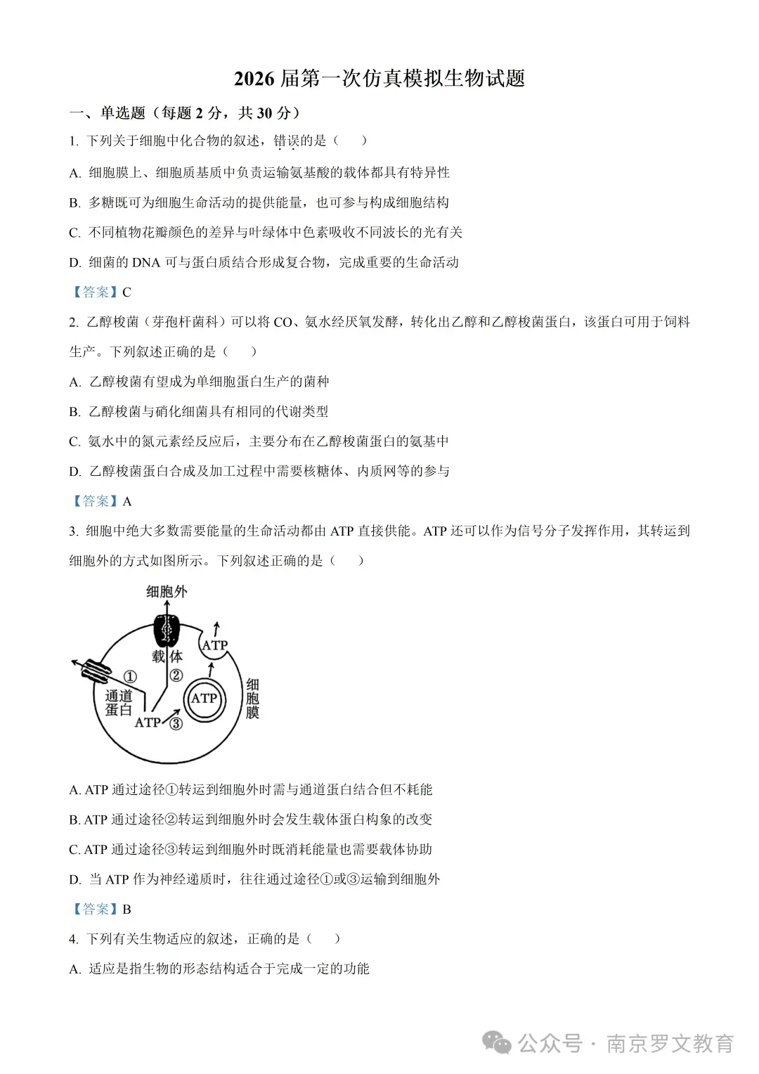 >2026届江苏南京六合区名校联盟高三下学期一模生物试卷+答案(2026.3)